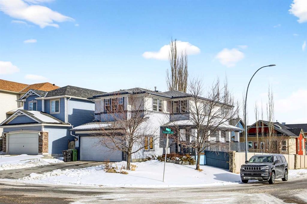 This beautiful home is well-situated on the corner lot across street from a park. Featuring on east-facing deck that wraps around the complete south and west sides of home and terminates at front porch. The floor plan is nice and open, with gorgeous hardwood and tile floors, and there is a small den great for an at-home office. The livingroom is a good size and great for entertaining family and friends. The kitchen has oak cabinets with lots of space for chef in the house, an attached island, an eating area, granite countertops. Upstairs is the large bonus room with corner fireplace, primary bedroom has walk-in closet and a 4-piece ensuite, other two bedrooms share the bathroom. The lower level is developed with a family room, the 4th bedroom and a full bath. The location is excellent, shopping is just around the corner, easy access to Deerfoot& Stoney Trail. Come and have a look, it won't last long. Upgraded recently: WASHER(2023), DRYER(2023), RANGE HOOD(2023), ROOF(2025), ONE SIDE OF SIDING(2025), STOVE(FEB 2026), DISHWASHER(FEB 2026).