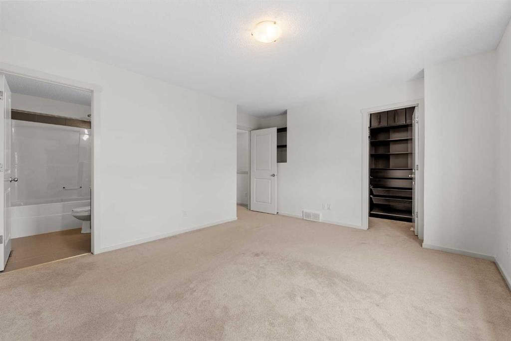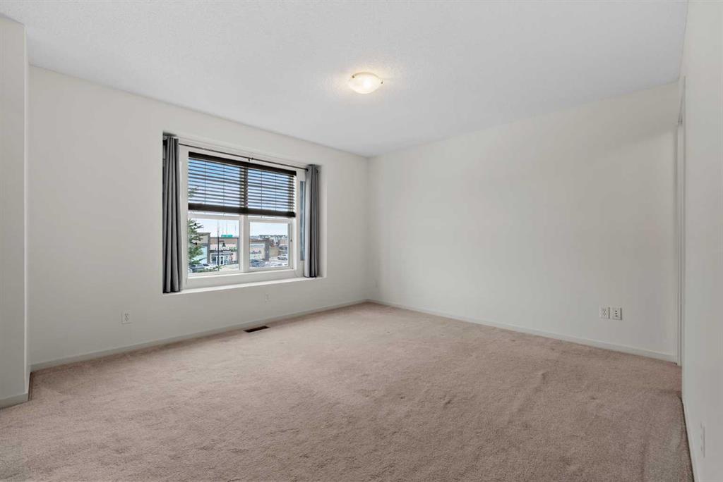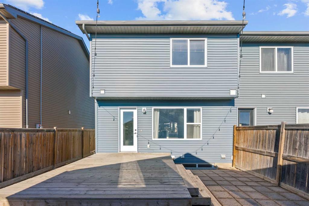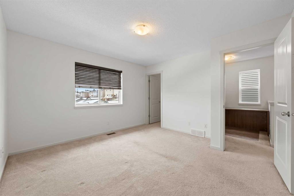 Experience a lifestyle upgrade in this rare semi-detached home offering over 1,800 sq. ft. of total developed living space, where thoughtful design meets everyday convenience. Inside, brand-new luxury laminate flooring and baseboards (2026) set a fresh, modern tone, complemented by a quartz kitchen with a 4-person island, soft-close full-pull cabinetry, and separate pantry. The home has been freshly painted throughout, and a new furnace was added in 2025. The home features a total of three large bedrooms, each with its own private ensuite. Upstairs features two primary suites each with large closet space and ensuite baths plus a sun-drenched upper-floor office with a cubicle-sized desk fitting perfectly into the corner space that is included with the home. Step outside to a south-facing deck with cozy Edison-bulb lighting for effortless summer entertaining, and explore the long-term potential of a separate entrance suitable for a future basement suite (subject to approval and permitting by the city/municipality). And for those who value storage, hobbies, or serious workspace, the showstopper awaits: a one-of-a-kind, 12’ vaulted, nearly 32’ deep custom garage offering unmatched versatility for EV charging, a home gym, or a full workshop. Positioned on an extra-wide boulevard—meaning extra parking and consistent snow removal—and just steps from Panorama Hills Plaza, this home offers unbeatable walkability, top-tier schools, 1-minute access to Stoney Trail, and a quick 10 km trip to the Calgary International Airport. See detailed feature sheet in supplements.