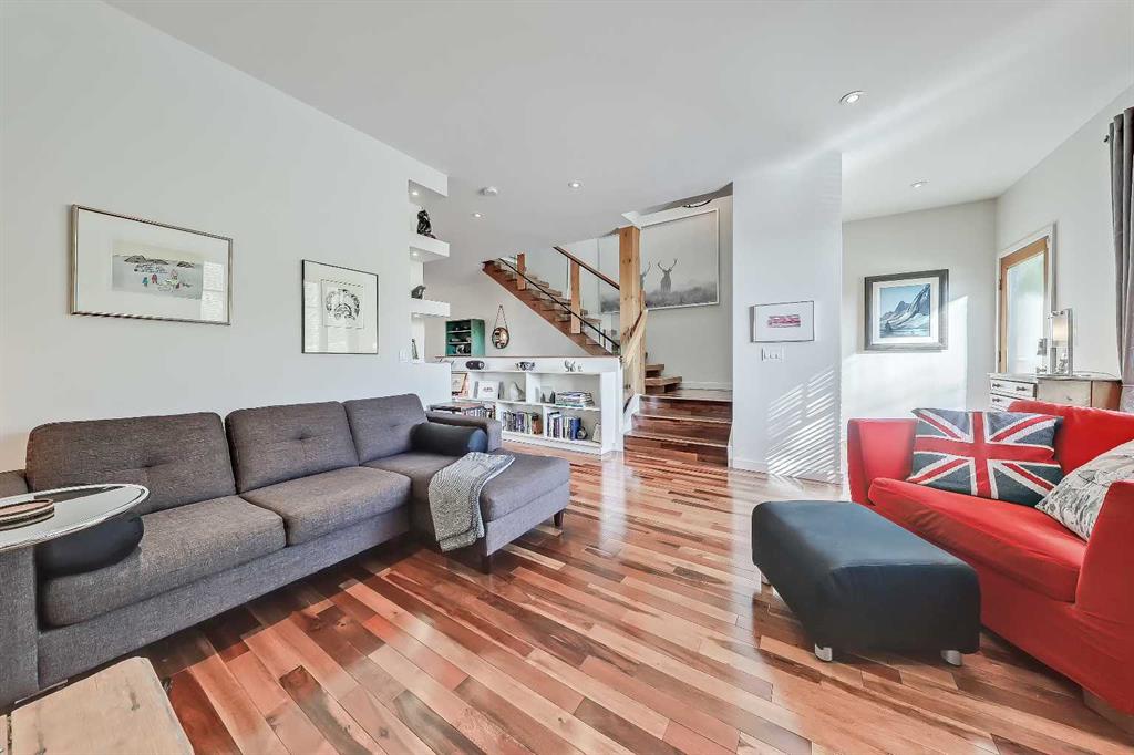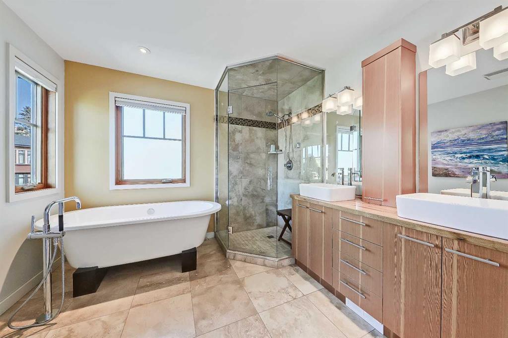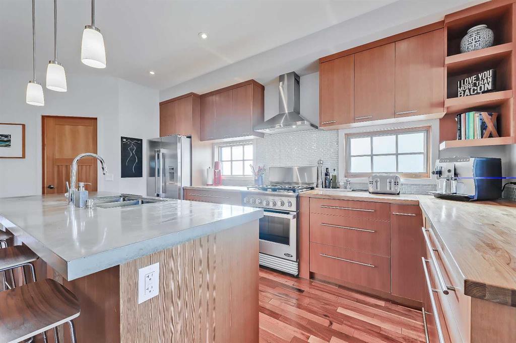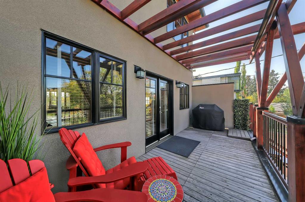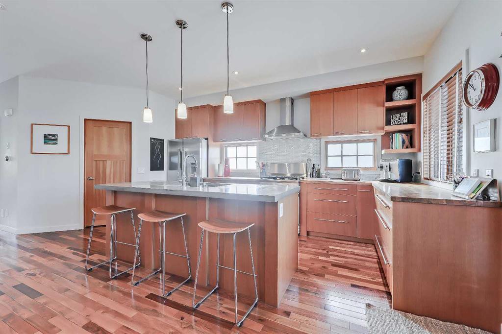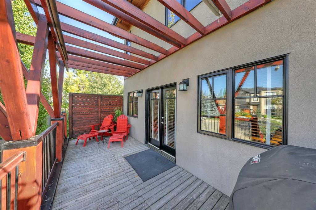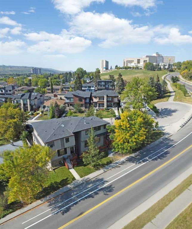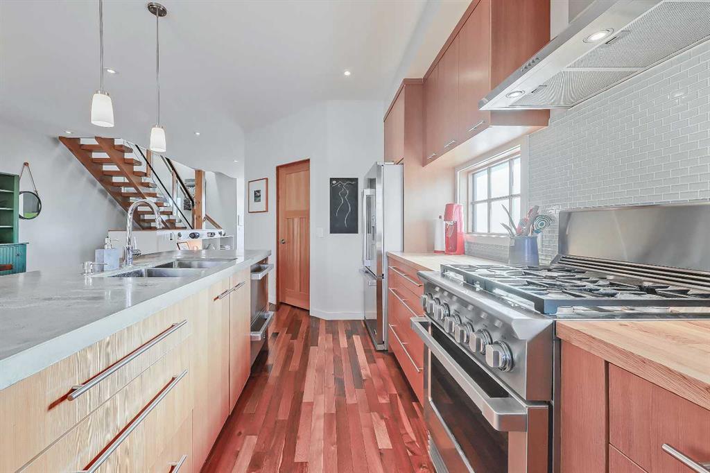 **PLAN YOUR OPEN HOUSE VISIT THIS WEEKEND! SATURDAY, OCTOBER 11TH FROM 1-3 PM** Presenting this West Coast-style semi-detached in the heart of Parkdale, blending natural design elements w/ modern convenience for a lifestyle that feels equal parts urban and retreat-like. Built by Copperstone Developments, this home offers 3 beds, 2 full baths, 2 half baths, and a rear-attached heated underdrive double garage w/ an extended driveway large enough to accommodate an RV or other rec vehicles. Enjoy being within walking distance of the Bow River pathways, where you can bike downtown to work like so many other residents do, or simply walk to Foothills Medical Centre or minutes to Kensington shops & restaurants. Upon entry, you’re greeted under a solid wood soffit design features w/ wooden stairs and railings leading you to the front entry, where a spacious foyer w/ a large closet sets the tone for the home’s “modern cabin in the mountains” aesthetic. The acacia hardwood floors and solid fir interior doors create warmth, while ample oversized windows keep the main floor bright. The front living room features a cozy gas fireplace, while an eye-catching powder room w/ a vessel sink on a natural wood stump, handcrafted from one of the previous trees of the property, adds rustic charm. The open-concept chef’s kitchen impresses w/ a massive pantry, custom site-built cabinetry w/ birch drawers, premium stainless steel appliances, butcher block counters, glass tile backsplash, and a concrete-topped island w/ bar seating. The adjacent dining area can accommodate even more seating as needed for larger groups and provides access to the upper rear deck. A striking open riser staircase w/ 10mm glass railings and solid fir timber pillars leads upstairs, where high ceilings and hardwood floors continue. The serene primary suite features large windows, a walk-in closet, and a barn door to a spa-like 5pc ensuite w/ dual sinks, a free-standing soaker tub, tiled glass shower w/ steam shower, and heated travertine floors. Two additional bedrooms, both w/ built-in closets, share a 4pc bath, while a barn-door-enclosed laundry closet adds convenience. The barn doors throughout the home were handcrafted and sculpted on-site; they are truly a piece of art in themselves. The fully developed lower level offers a rec room w/ a versatile gym/flex space, a 2pc bath, and a tiled mudroom/foyer w/ direct access to the heated double garage. Additional features include a Vacuflow rough-in, a snow-melt system rough-in for the driveway, and an under-the-stairs storage area at the front exterior stairs. Close to local favourites like Nove Nine Diner and Lazy Loaf & Kettle, and less than 10 minutes to Kensington, U of C, Edworthy Park, and major routes, this home balances recreation, convenience, and lifestyle. With many other homes using the same builder-grade finishing styles, it’s refreshing to see a home built with real elements that are so often forgotten by buyers looking for quality building materials.