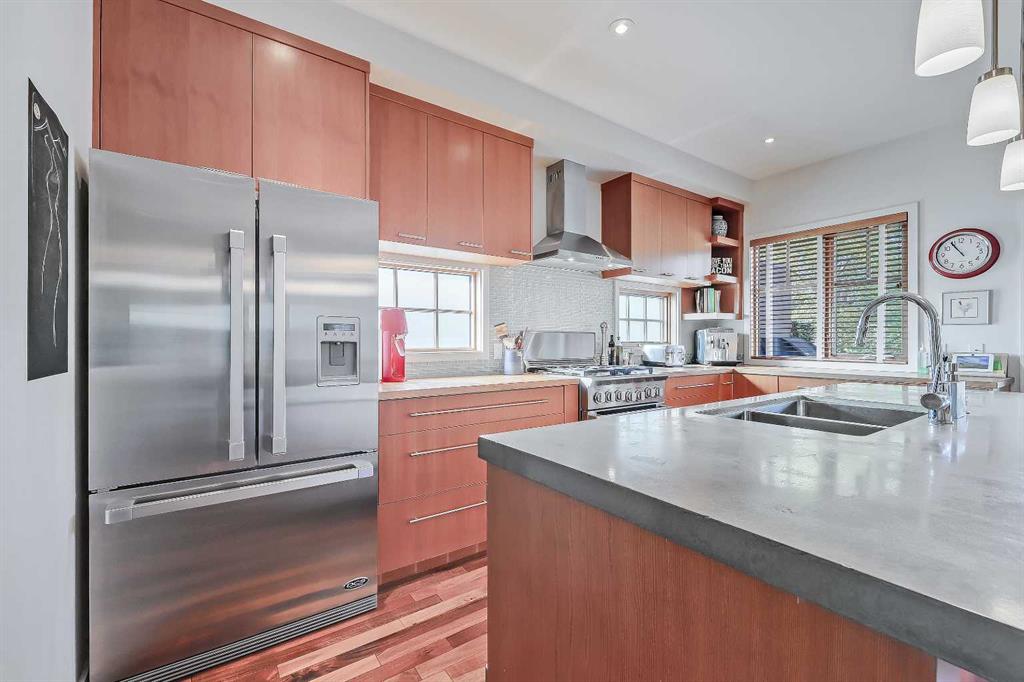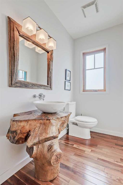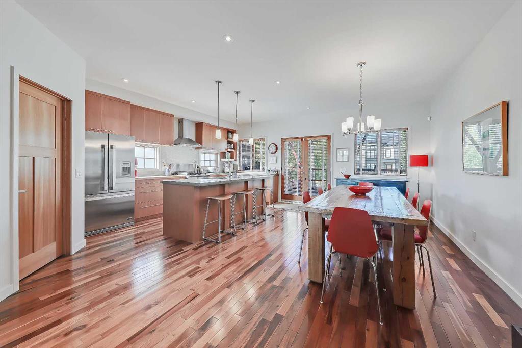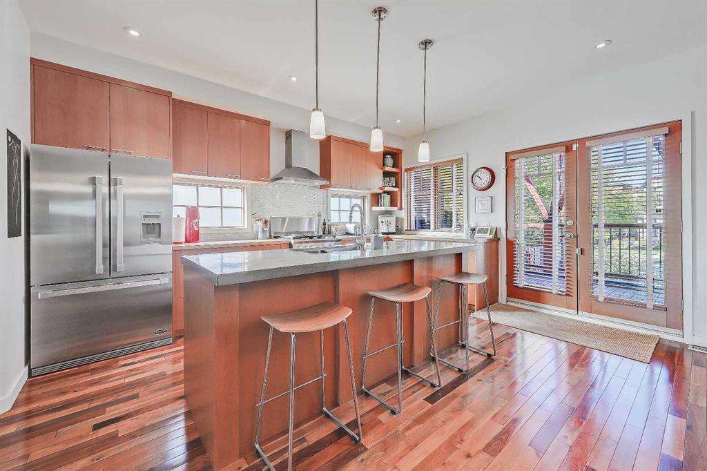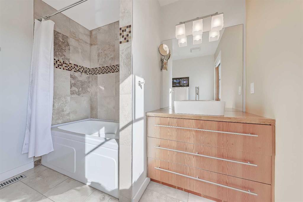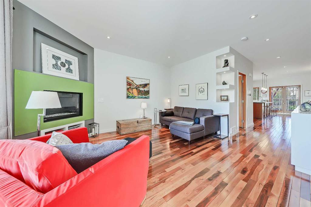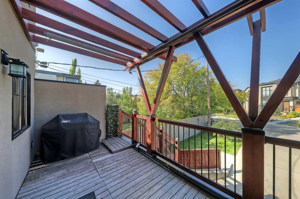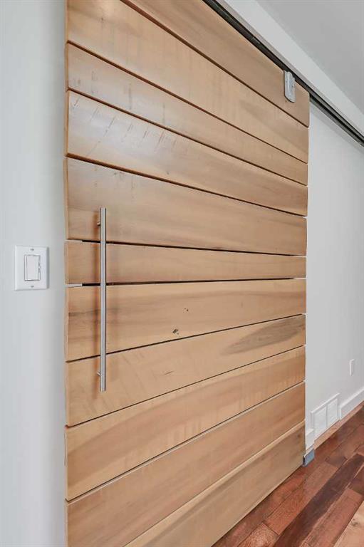 **PLAN YOUR OPEN HOUSE VISIT THIS WEEKEND! SATURDAY, OCTOBER 11TH FROM 1-3 PM** Presenting this West Coast-style semi-detached in the heart of Parkdale, blending natural design elements w/ modern convenience for a lifestyle that feels equal parts urban and retreat-like. Built by Copperstone Developments, this home offers 3 beds, 2 full baths, 2 half baths, and a rear-attached heated underdrive double garage w/ an extended driveway large enough to accommodate an RV or other rec vehicles. Enjoy being within walking distance of the Bow River pathways, where you can bike downtown to work like so many other residents do, or simply walk to Foothills Medical Centre or minutes to Kensington shops & restaurants. Upon entry, you’re greeted under a solid wood soffit design features w/ wooden stairs and railings leading you to the front entry, where a spacious foyer w/ a large closet sets the tone for the home’s “modern cabin in the mountains” aesthetic. The acacia hardwood floors and solid fir interior doors create warmth, while ample oversized windows keep the main floor bright. The front living room features a cozy gas fireplace, while an eye-catching powder room w/ a vessel sink on a natural wood stump, handcrafted from one of the previous trees of the property, adds rustic charm. The open-concept chef’s kitchen impresses w/ a massive pantry, custom site-built cabinetry w/ birch drawers, premium stainless steel appliances, butcher block counters, glass tile backsplash, and a concrete-topped island w/ bar seating. The adjacent dining area can accommodate even more seating as needed for larger groups and provides access to the upper rear deck. A striking open riser staircase w/ 10mm glass railings and solid fir timber pillars leads upstairs, where high ceilings and hardwood floors continue. The serene primary suite features large windows, a walk-in closet, and a barn door to a spa-like 5pc ensuite w/ dual sinks, a free-standing soaker tub, tiled glass shower w/ steam shower, and heated travertine floors. Two additional bedrooms, both w/ built-in closets, share a 4pc bath, while a barn-door-enclosed laundry closet adds convenience. The barn doors throughout the home were handcrafted and sculpted on-site; they are truly a piece of art in themselves. The fully developed lower level offers a rec room w/ a versatile gym/flex space, a 2pc bath, and a tiled mudroom/foyer w/ direct access to the heated double garage. Additional features include a Vacuflow rough-in, a snow-melt system rough-in for the driveway, and an under-the-stairs storage area at the front exterior stairs. Close to local favourites like Nove Nine Diner and Lazy Loaf & Kettle, and less than 10 minutes to Kensington, U of C, Edworthy Park, and major routes, this home balances recreation, convenience, and lifestyle. With many other homes using the same builder-grade finishing styles, it’s refreshing to see a home built with real elements that are so often forgotten by buyers looking for quality building materials.
