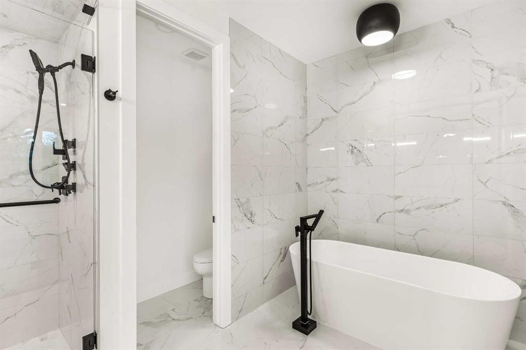 Welcome to this impeccably crafted 3-storey duplex offering OVER 3,400+ SQFT of finished living space, built by the reputable ACE HOMES. With 6 BEDROOMS, 4.5 BATHROOMS, and a LEGAL SUITE with a private side entrance, this home is ideal for multigenerational families or those looking for a mortgage helper. The main floor invites you in with a generous foyer and features custom closets, a bench, and wall hooks for everyday convenience. Just off the entrance, a POCKET OFFICE provides a quiet workspace without sacrificing living area. The front-facing dining room enjoys natural light, while the chef-inspired kitchen sits at the heart of the home, boasting stainless steel appliances, built-in microwave and oven, a full pantry, and a large central island that's perfect for entertaining or everyday family meals. The rear living room, bathed in morning light thanks to its east-facing dual patio doors, exudes warmth with its built-in fireplace and cozy atmosphere, seamlessly connecting indoor and outdoor living. Upstairs on the second level, the primary bedroom is a peaceful retreat featuring a luxurious 5-piece ensuite with a freestanding tub, rain shower with bench, and full-height designer tiles—plus the option to install a steam feature for that spa experience at home. Two additional bedrooms with oversized windows, a full bathroom, and a convenient laundry room with washer, dryer, and sink complete this level. The third floor adds a unique layer of lifestyle flexibility with a SECOND MASTER bedroom connected to a Jack & Jill ensuite, plus a BONUS LOUNGE with WET BAR and access to a private BALCONY. Whether used as a guest suite, home office retreat, or entertainment zone, this top floor is a standout feature—offering separation, privacy, and stunning potential. The fully finished basement includes 2 additional bedrooms, a full bathroom, a SEPARATE LAUNDRY, and its own entrance and access to the mechanical room—making it move-in ready for tenants or extended family, with privacy and independence built in. Located in one of Calgary’s most desirable inner-city neighborhoods, Parkdale offers the perfect blend of riverside charm and urban convenience. Enjoy being steps away from the Bow River Pathway system, Edworthy Park, and local favorites like Lazy Loaf & Kettle. Commuters will appreciate easy access to Crowchild Trail, while professionals and students benefit from close proximity to the Foothills Medical Centre, Alberta Children’s Hospital, and the University of Calgary. Parkdale is known for its strong sense of community & family-friendly amenities—including playgrounds, off-leash areas, and boutique shops. Whether you're looking for a forever home or a smart investment in Calgary’s northwest, this property offers the space, style, and location to make it all possible. TAKE POSSESSION JANUARY 2026