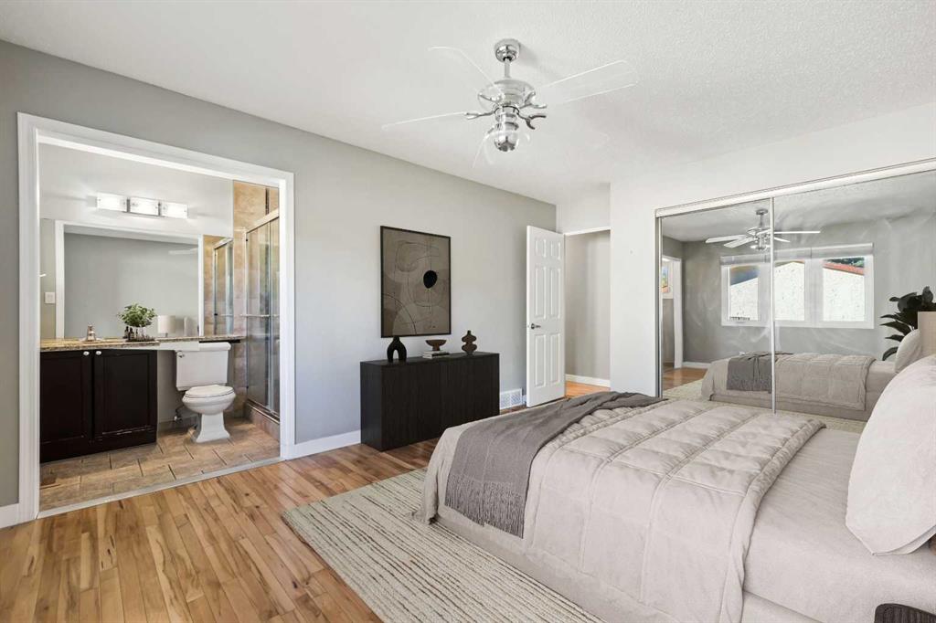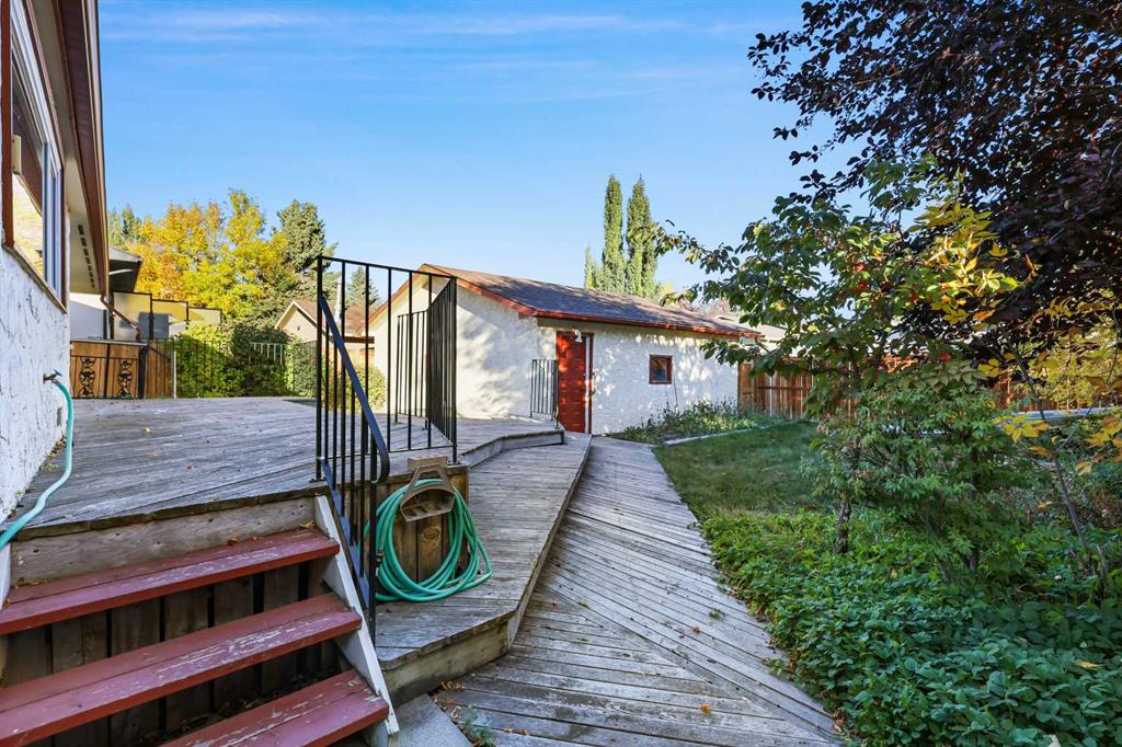 Wonderful Bungalow in one of the Best Locations in Highly Sought-After Parkland. Homes very Rarely come on the market in this Lovely, Quiet Green! Access to Fish Creek Park with miles and miles of scenic biking and walking trails is just steps away.. Spacious Rooms throughout! The main level features Hardwood and Beautiful Cork Flooring. Light & Bright Living Room allows for so many options for Furniture Placement. Great functional White Kitchen with Eating Nook is ideally situated between the Main Floor Family Room and Dining Room. The cozy Family Room is showcased by a Brick-Faced, Wood-Burning Fireplace and Patio Doors leading to a Multi-Level Deck - the Perfect Spot for Family Get-Togethers in and out! Large Primary Bedroom with Lovely Updated Ensuite, 2 Secondary Bedroom and Main Bathroom complete this level. The Lower Level offers so many opportunities to develop into the space you need and put you own Special Touches on it. Huge Rec Room/Games Room with Beautiful Brick Wood-burning Fireplace, Large Wet Bar and still ample room to develop a Den, Bedroom and Bathroom as well - Plumbing for Bathroom is already in place.. The Backyard features the multi-level deck and an Over-Sizes Double Garage. Parkland Residents have access to the community's private Park 96 with Tennis Courts, Skating Rink, Disc Golf and more! Excellent Location with easy access to Major Roadways, Shopping - just minutes away. This Great Home is Waiting for You!
