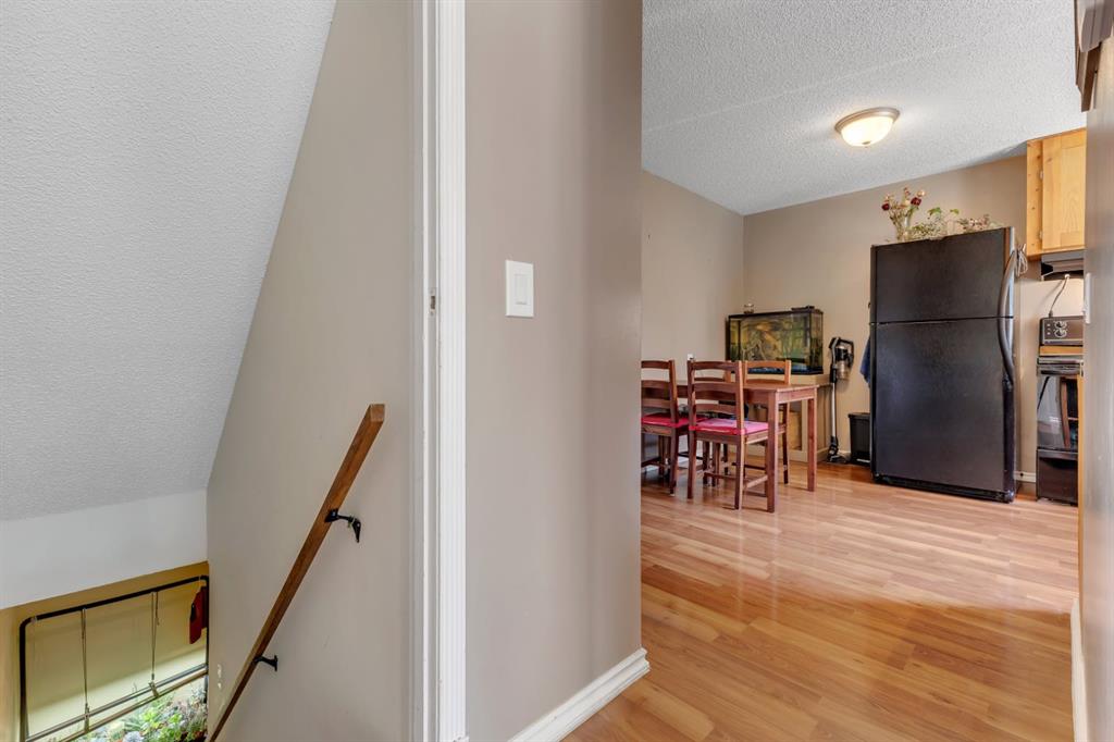 Welcome home! This updated duplex is what you have been looking for! A seamless layout that works for everyone- step inside to the cozy, spacious living room with LARGE WINDOWS that overlook the front yard. Ample cupboard and counter space in the kitchen, and a window that overlooks the gorgeous backyard makes doing dishes easy! Upstairs offers 3 full sized bedrooms and a 4 piece bathroom. The fully developed basement makes for an excellent bonus living space, with a "secret door" that leads to the storage room and laundry room. NEW ROOF on the house & garage replaced in 2023! And a BRAND NEW HOT WATER TANK (September 2025). Whether you want to enjoy your morning coffee by your pond, entertain friends & family in your WEST facing backyard, enjoy the garden, or have a fire in the fire pit. This backyard is truly a highlight of the property. With back alley access, no neighbours behind, and a detached garage- what more can you ask for! Located close to parks, playgrounds, schools, Elliston park, minutes from COSTCO and all the amenities you need! You won't want to miss out on this opportunity.