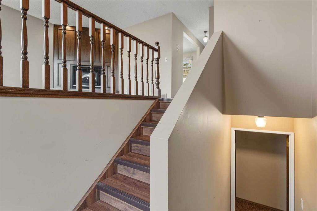 Welcome to 8 Ranchlands Crescent NW! This well-loved home offers comfort, functionality, and great potential - with no houses behind and convenient alley access. The five year old roof adds peace of mind, while the newer laminate flooring in the living room brings a fresh touch. Enjoy cozy evenings by the gas fireplace or relax on the covered deck overlooking the treed yard. The main floor features two bedrooms, a full bathroom, a bright kitchen with white cabinetry and good storage. Laundry is conveniently located on the main floor as well. Downstairs, you'll find a third bedroom, a 3 piece bathroom, a spacious rec room, and a tinker/work area - perfect for hobbies or projects. This home has been well cared for over the years, and is ready for your personal touches. A great opportunity to update and make it your own while building equity in a mature, family-friendly community close to parks, schools, and amenities.