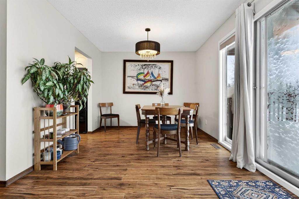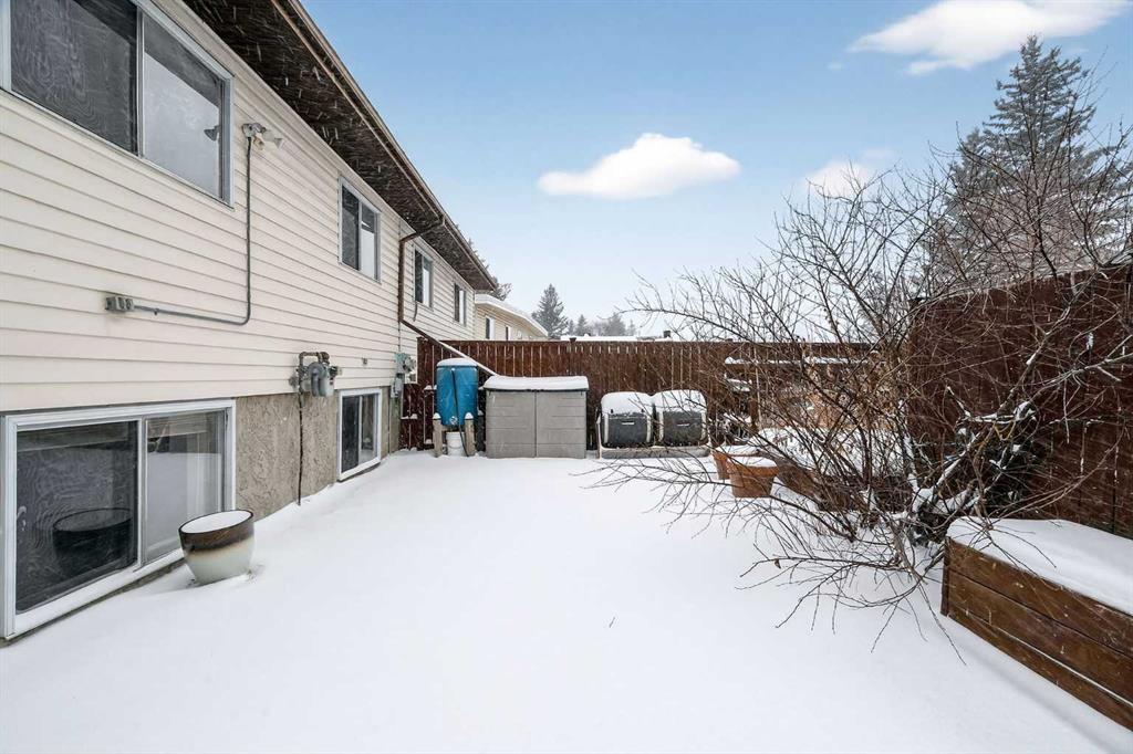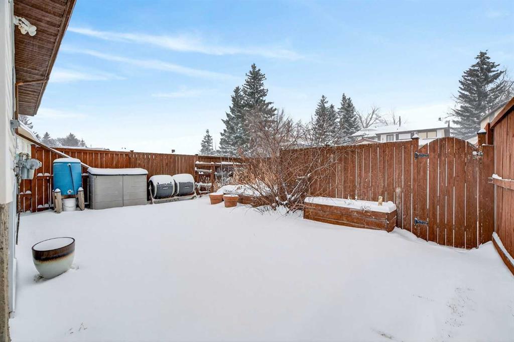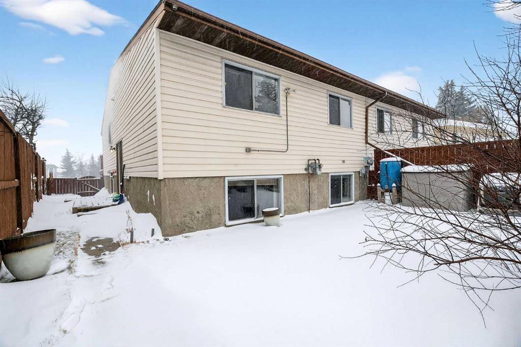 **** OPEN HOUSE - SATURDAY, MARCH 7TH 1 - 3 P.M.**** NO CONDO FEES!!! Situated in a tranquil setting across from a lovely park this DUPLEX BUNGALOW boasts an OPEN FLOOR PLAN with OVERSIZED ROOMS to suit any lifestyle. The kitchen features updated painted cabinetry offset with black appliances. There is ample storage in the kitchen with an assortment of lower and upper cabinets. A large slider window brightens the kitchen and work space. Easy care laminate flooring flows to the dining room and transitions to the spacious living room. There is plenty of room to add a piano or set up a small in home office. An UPDATED ELEGANT FIVE PIECE BATH sits adjacent to the TWO MAIN FLOOR BEDROOMS tucked at the end of the hall. Each bedroom overlooks the quiet rear fenced yard. The lower level is further developed with ANOTHER TWO SPACIOUS BEDROOMS with oversized windows and double closets. A 3 pc bath with a 5 ft walk in shower is thoughtfully positioned next to the bedrooms. The lower level has been roughed in for a future suite/illegal suite depending on what you plan to do or develop the space further to add another living room. There are rough ins for a summer kitchen including a new 100 amp panel and exhausting in place for a stove. Laundry is located in the lower level and sits next to the newer furnace and HWT (2009). The roof was redone in 2014. New flooring was done on the main floor in 2023. Just a 20 minute walk from Crowfoot LRT station you’ll find the perfect home for an empty nester, or a first time home buyer. Ranchlands sits next to Crowfoot crossing and houses everything you need for restaurants, shopping and entertainment and major public transportation corridors and bus routes. Relax on the full width DECK that looks towards the park. A FULLY FENCED REAR YARD sets the stage for a secure play place for children and pets. Perennials, raspberry & saskatoon bushes and rhubarb create a welcoming outdoor retreat and home garden patch. There is ample street parking as well as parking in the rear and enough space to add a garage. Call your favorite realtor today and take advantage of this AFFORDABLE HOME that offers up over 2000 SQ FT OF DEVELOPED LIVING SPACE. An opportunity for first time buyer, young family and or investor.