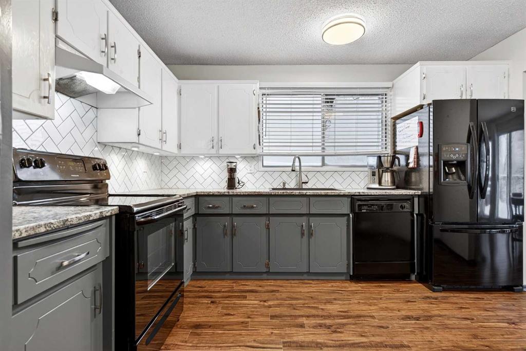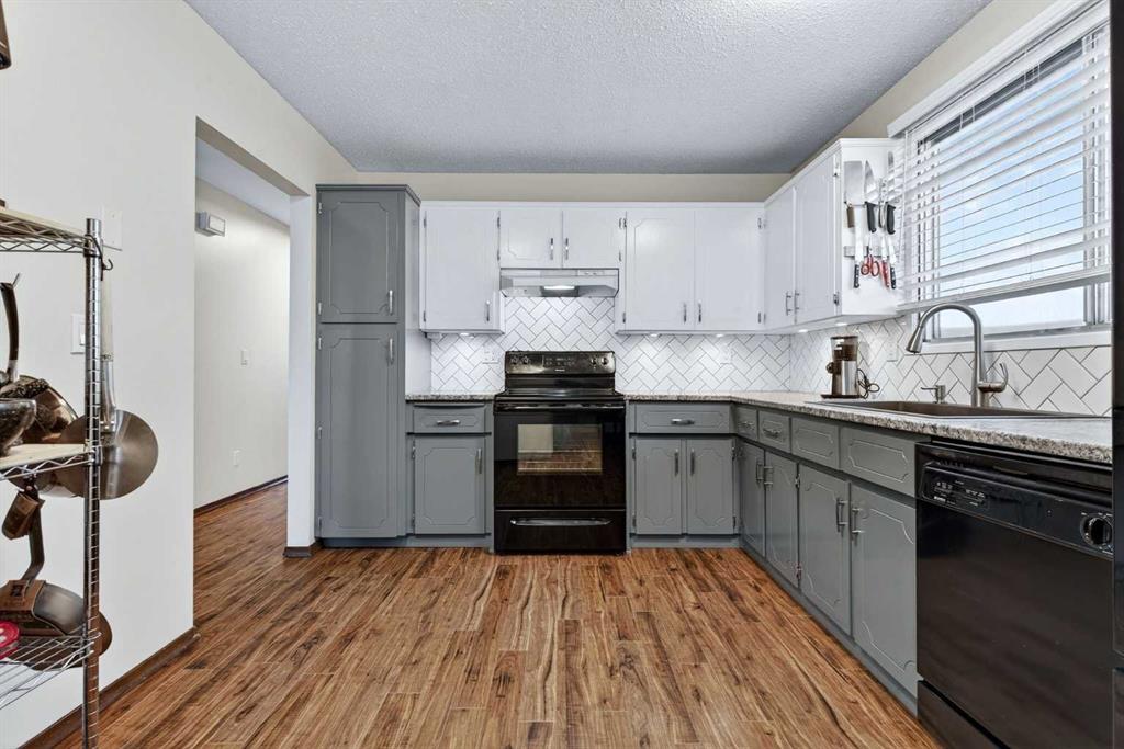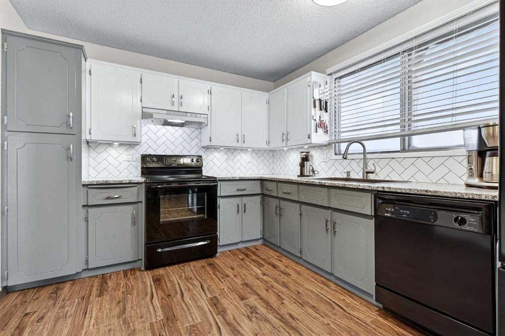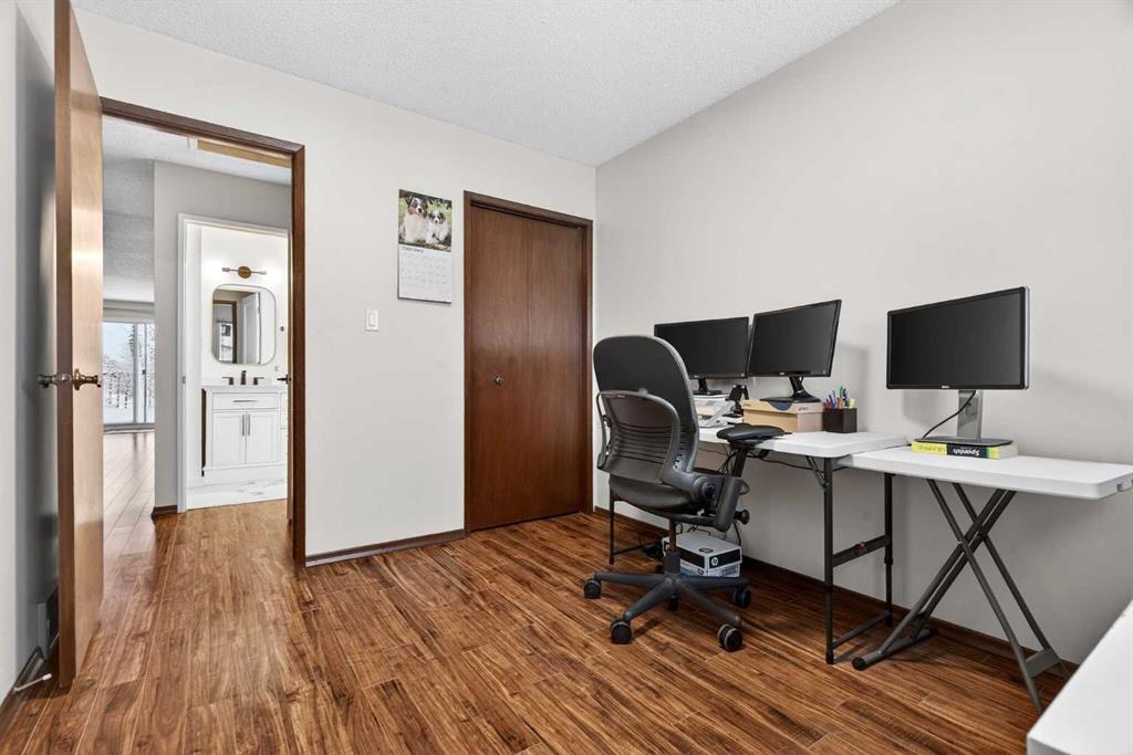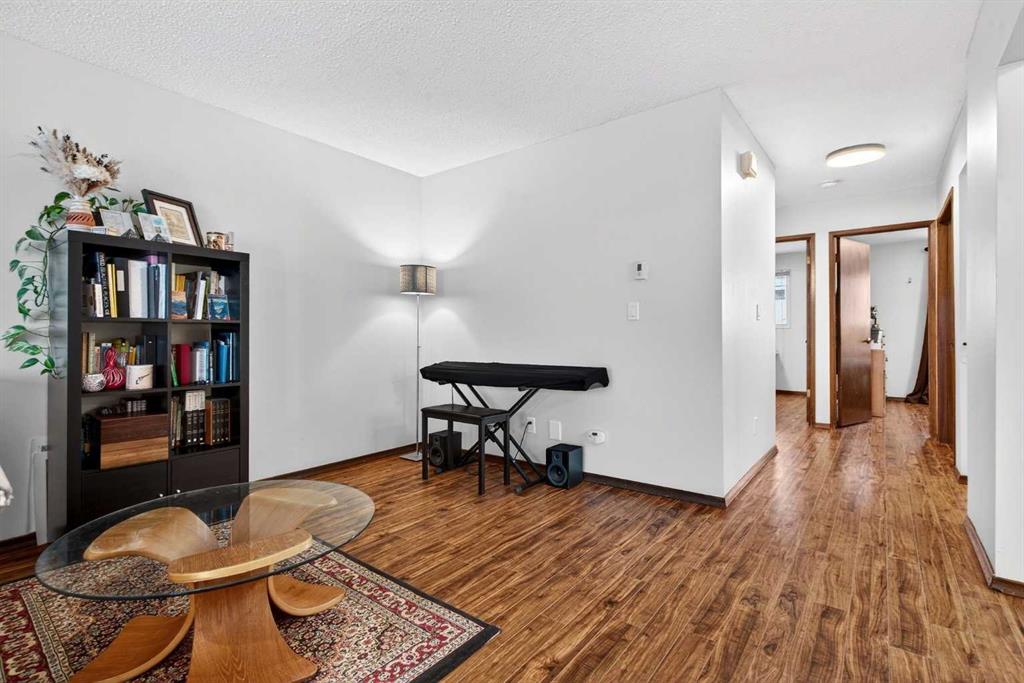 **** OPEN HOUSE - SATURDAY, MARCH 7TH 1 - 3 P.M.**** NO CONDO FEES!!! Situated in a tranquil setting across from a lovely park this DUPLEX BUNGALOW boasts an OPEN FLOOR PLAN with OVERSIZED ROOMS to suit any lifestyle. The kitchen features updated painted cabinetry offset with black appliances. There is ample storage in the kitchen with an assortment of lower and upper cabinets. A large slider window brightens the kitchen and work space. Easy care laminate flooring flows to the dining room and transitions to the spacious living room. There is plenty of room to add a piano or set up a small in home office. An UPDATED ELEGANT FIVE PIECE BATH sits adjacent to the TWO MAIN FLOOR BEDROOMS tucked at the end of the hall. Each bedroom overlooks the quiet rear fenced yard. The lower level is further developed with ANOTHER TWO SPACIOUS BEDROOMS with oversized windows and double closets. A 3 pc bath with a 5 ft walk in shower is thoughtfully positioned next to the bedrooms. The lower level has been roughed in for a future suite/illegal suite depending on what you plan to do or develop the space further to add another living room. There are rough ins for a summer kitchen including a new 100 amp panel and exhausting in place for a stove. Laundry is located in the lower level and sits next to the newer furnace and HWT (2009). The roof was redone in 2014. New flooring was done on the main floor in 2023. Just a 20 minute walk from Crowfoot LRT station you’ll find the perfect home for an empty nester, or a first time home buyer. Ranchlands sits next to Crowfoot crossing and houses everything you need for restaurants, shopping and entertainment and major public transportation corridors and bus routes. Relax on the full width DECK that looks towards the park. A FULLY FENCED REAR YARD sets the stage for a secure play place for children and pets. Perennials, raspberry & saskatoon bushes and rhubarb create a welcoming outdoor retreat and home garden patch. There is ample street parking as well as parking in the rear and enough space to add a garage. Call your favorite realtor today and take advantage of this AFFORDABLE HOME that offers up over 2000 SQ FT OF DEVELOPED LIVING SPACE. An opportunity for first time buyer, young family and or investor.