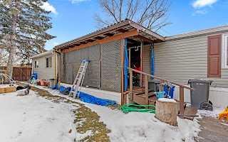 OPEN HOUSE April 4 from 12 -2 PM...Everything UPGRADED in 2023. This 953 sf 2 bed 1 bath mobile home is just waiting for you ! Starting with the exterior, new siding, insulation, Tyvek wrapped, windows (newer), front exterior door, membrane roof, eave trough (all 2023), new shed around the back for storage, all plumbing lines have been changed to PEX. A few steps up to the covered deck has a dedicated entrance direct into the mud room as well as front entry into the home. Fully drywalled throughout with new insulation to keep down the heating costs, this unit was relevelled 2023. Furnace (2020), Rinaai Tankless Hot Water (2020), laminate flooring-DMX Advanced vapor barrier underlay throughout (mold, moisture & sound barrier) will increase floor temperature by 12 degrees. New lighting throughout with ceiling fan in living room & all new baseboards & casing. The kitchen is truly a Chef’s kitchen with upgraded appliances and tons of cabinets & counterspace. A separate side pantry is beside the hall closet. Stainless fridge-plumbed for water & ice (2023 with extended warranty), dishwasher (2023), microwave, vented outside (2023), convection stove (2020), high end laminate counters, Blanco composite double sink w/ Pfister faucet & shaker style cabinets. Eating bar seats 2 comfortably (have seat… look around !). Living room has big windows letting in the natural light, window coverings (2023), wall unit TV/stand, dining area & front hall closet. The primary bedroom is big & can easily accommodate a king size bed, walk in closet area, custom wall panels, cheater door to the main bathroom, the 5pce bathroom has soaker tub (2023), vanity with double sinks (2023), new toilet (2023) and water resistant floor laminate tiles. The second bedroom is huge and can easily fit 2 beds & has wall to wall closet. The mud room is large & has same flooring & underlay as the rest of home, peg board for keeping everything neat & tidy & still tons of room for storage. Side by side front parking fits a truck and good sized SUV. Large deck, big yard (size rivals some new communities) & around the corner in back is shed for all your storage needs. RV parking on site for a nominal fee. The Lot Lease Rate of $1100.00/ month includes water, sewer, snow & garbage removal, common area maintenance and onsite management & recycling. Mountview Mobile home park has easy access to Easthills shopping, theatres, COSTCO are close by & as are bus routes to downtown. Schools & amenities all close by with Elliston Park across the street for walking, biking & big play park for kids, also short distance away from Stoney Trail.. START PACKING !!