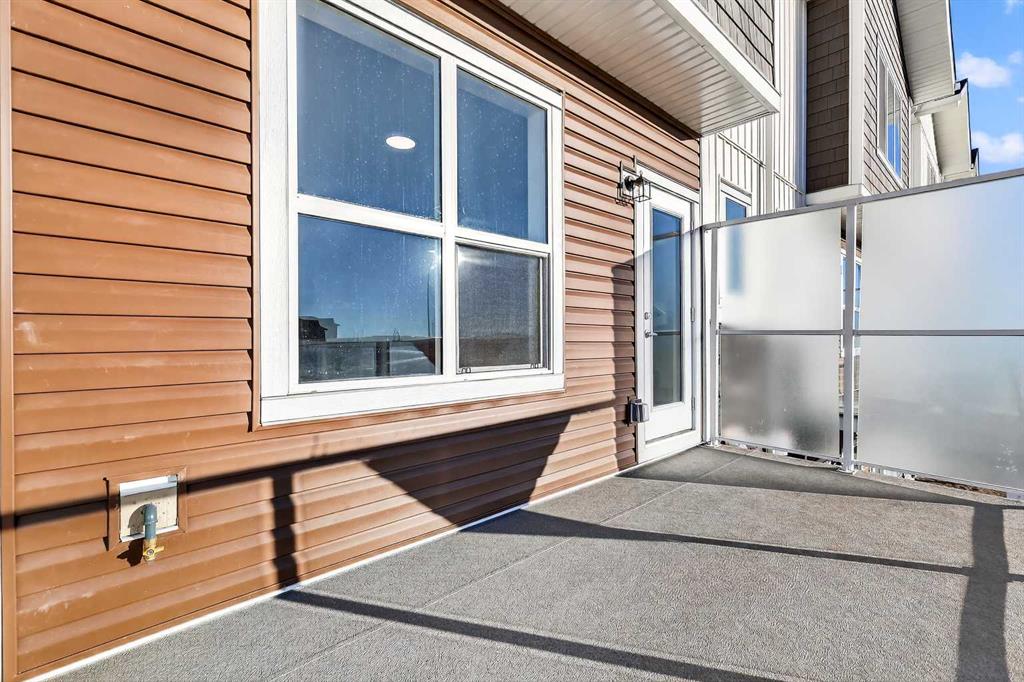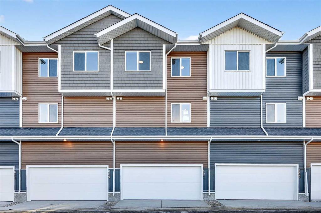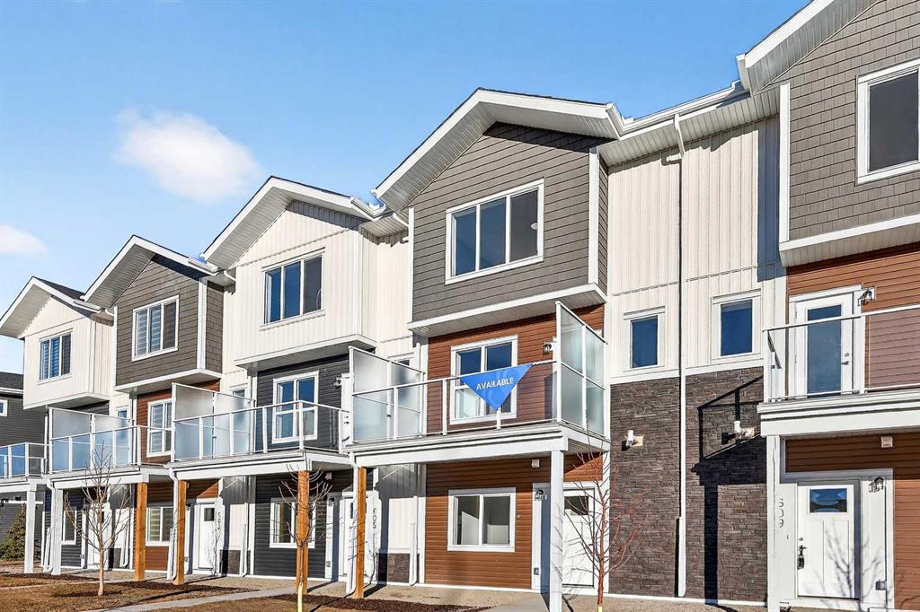 StreetSide proudly presents this exceptionally popular interior-unit townhome, where expansive living areas meet modern comforts and sophisticated finishes. The thoughtfully designed floorplan features three spacious upper-level bedrooms and two and a half well appointed bathrooms, complemented by a versatile lower-level den perfect for a home office or quiet retreat. The heart of the home is an inviting open-concept main floor, anchored by a large gourmet kitchen featuring a functional breakfast bar for casual dining. This bright living space transitions seamlessly to a private balcony, offering a perfect setting for outdoor relaxation. The interior showcases high end craftsmanship, including modern dark slab-style cabinetry with a full bank of drawers for maximum storage. The kitchen is further elevated by polished white quartz countertops and a full suite of premium stainless steel appliances. Durable luxury vinyl flooring runs throughout the primary living areas, while the stairs and upper level are finished with plush carpet over an 8lb underlay for superior comfort. Additional conveniences include an attached double car garage, professionally maintained landscaping, and a lifestyle defined by maintenance free living. Located within Red Embers Point East, this home places you at the heart of the dynamic Redstone neighborhood. Enjoy the ease of a convenient location with quick access to major routes, including Stoney Trail, ensuring you are never far from the city's best. The community is strategically positioned near future commercial developments, promising shops, services, dining, and entertainment options just moments from your doorstep.