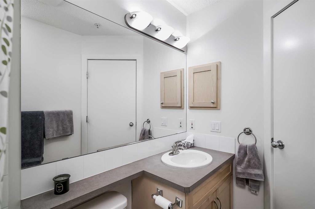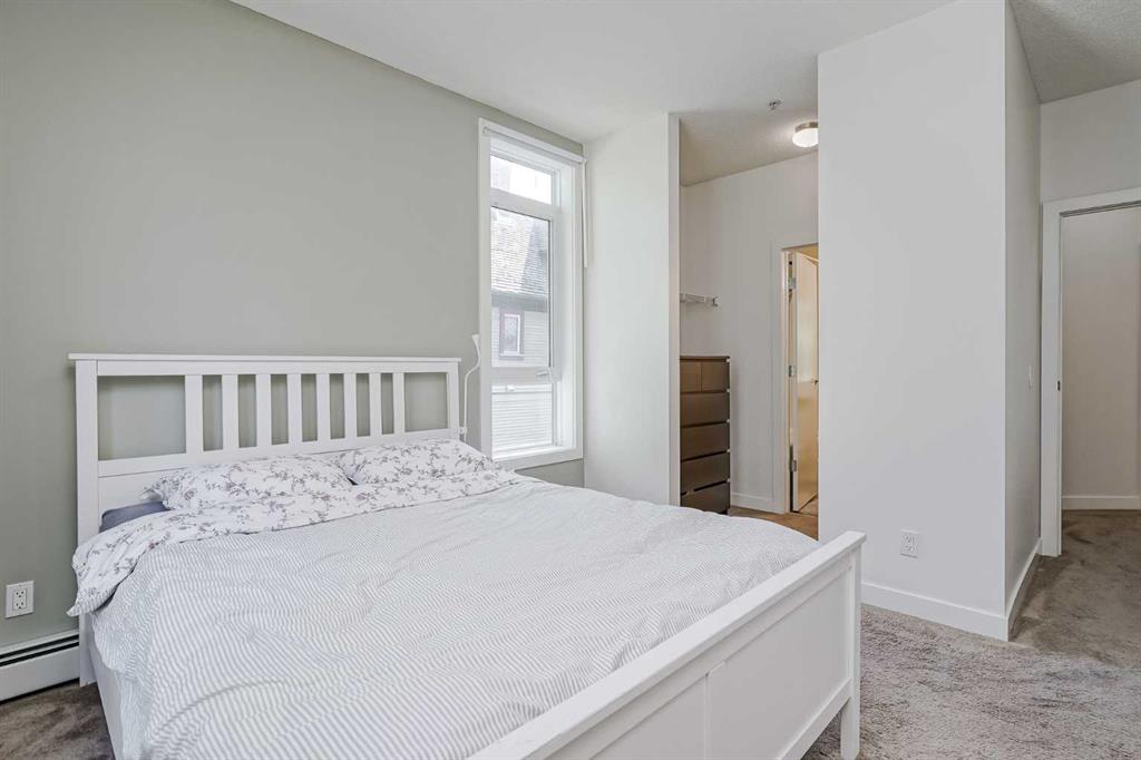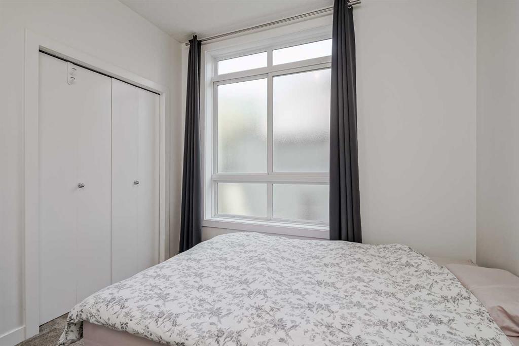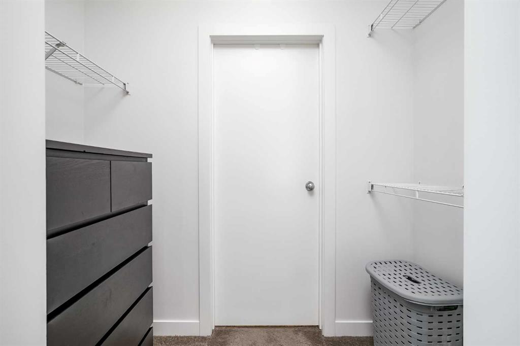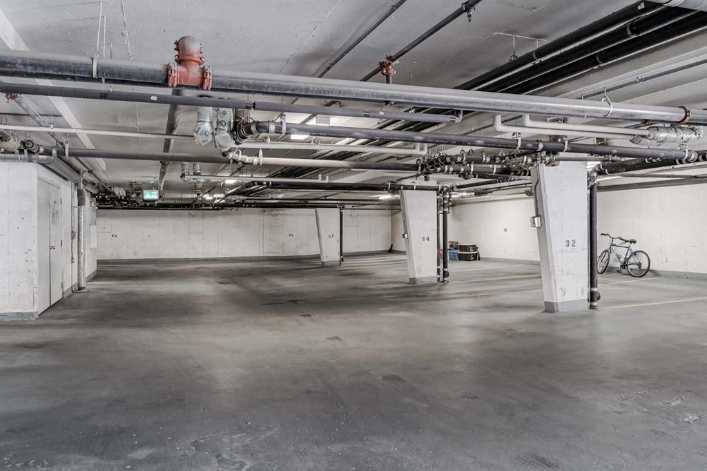The primary bedroom wakes you gently, hillside green and birdsong just outside, with a walk-through closet leading to its private bath. The second bedroom stands ready, for guests, work, or rest, with another full bath beside it. Laundry lives within the suite. The car rests below, in its own titled underground stall. The street is a cul-de-sac, still and hushed, with almost no traffic. Yet Bridgeland’s restaurants, shops, and markets are steps away.