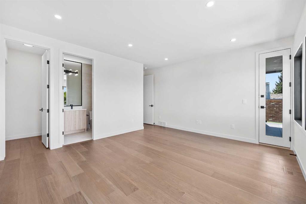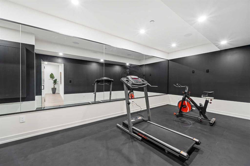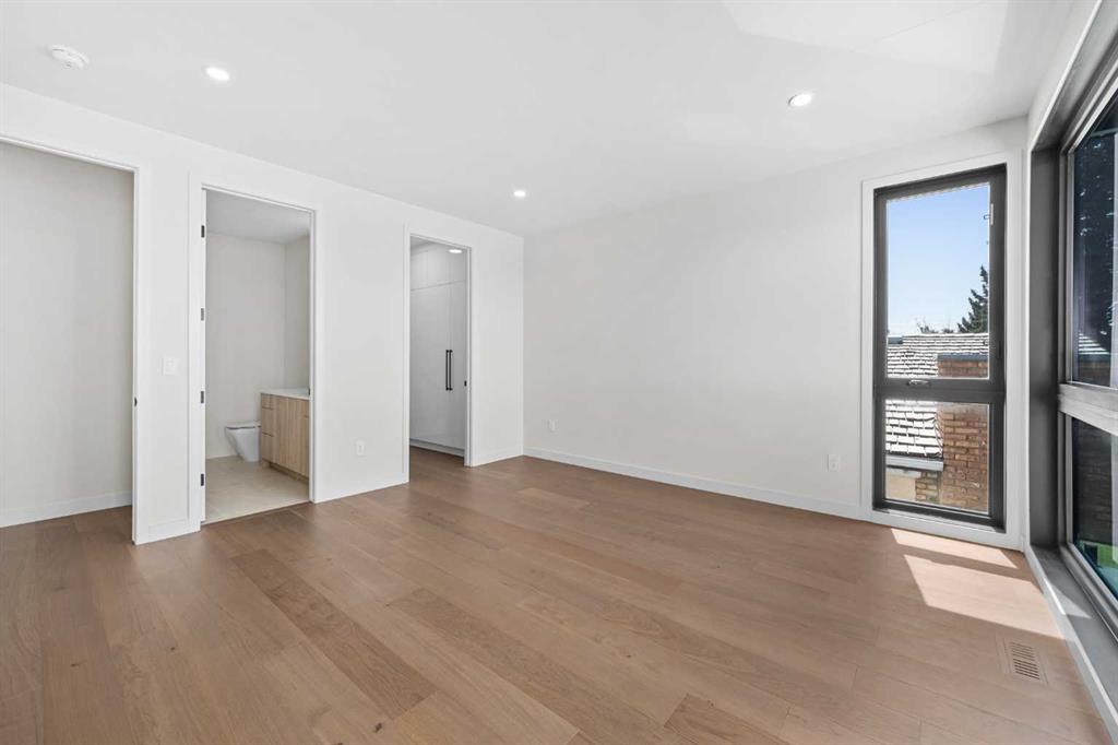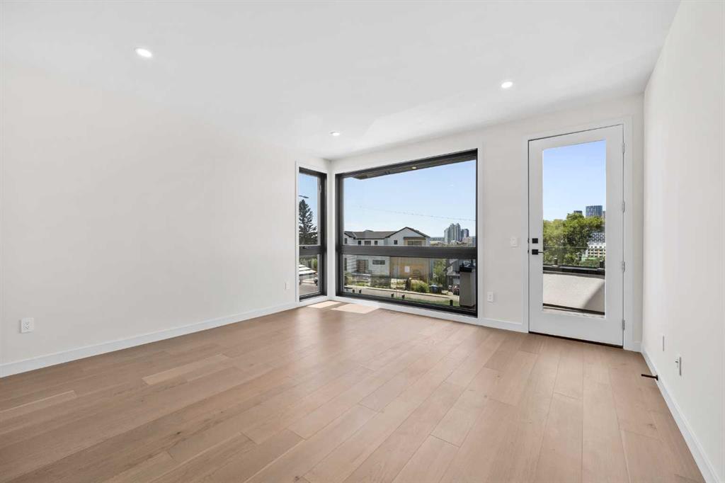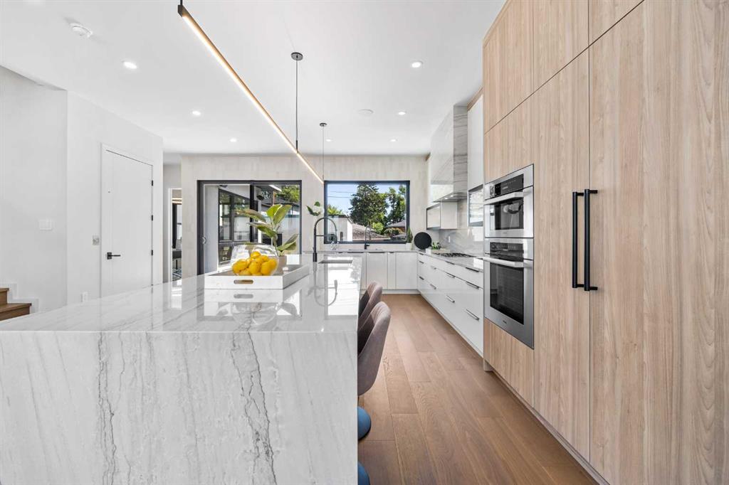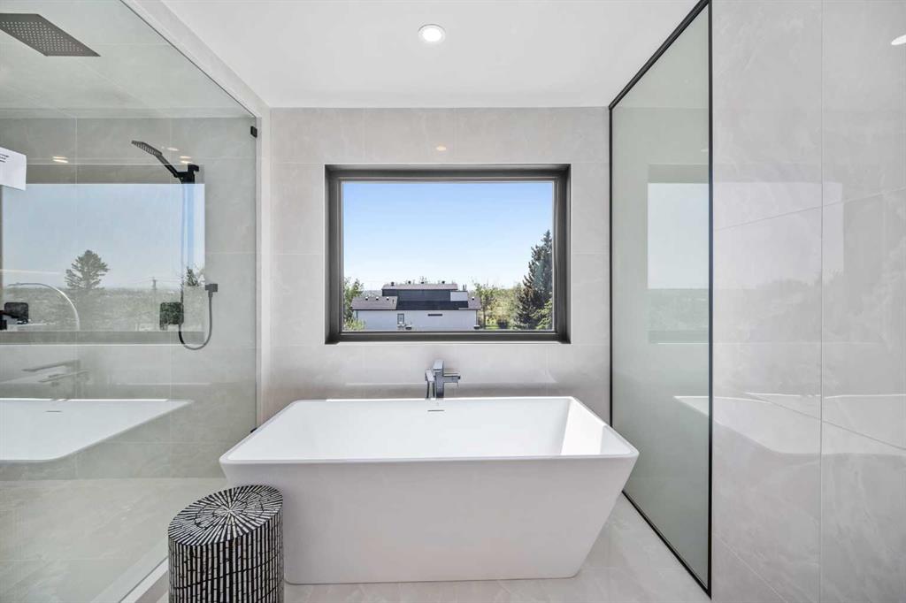 An architectural masterpiece by Silverpoint Custom Homes and Paul Lavoie Interior Design. Perched on a spectacular lot overlooking Bridgeland, and offering breathtaking views of the City and Rocky Mountains. A 5,200-square-foot gem, which seamlessly blends Hollywood Hills vibes, in a meticulous and one of a kind design. A fantastic open floor plan with a separate formal living and dining rooms overlooking the city. Boasting a truly magnificent kitchen, featuring a 13ft waterfall island and all MIELE appliances. Hardwood floors weave throughout the four levels including the basement, creating a harmonious atmosphere of seamless design. The main level surprises you with a hidden coat closet, a spacious mudroom, and a private den overlooking a backyard oasis with a large deck, (hot-tub ready) Move effortlessly between levels via the elevator or a captivating floor to ceiling glass-walled staircase leading to three generous bedrooms and a master top suite, simply like no other. The second floor offers 3 spacious bedrooms with panoramic city views from 2 bedrooms, private balconies, and a separate family lounge with access to a full guest bath. A fabulous laundry room and linen closet complete this level, not to mention large picture windows offering fulll sunrise worthy east views. The third-floor PRINCIPAL BEDROOM is a showstopper with a HUGE BALCONY showcasing the best panoramic city and mountain vews. A separate lounge area with coffee bar, fridge and a built in TV LIFT separate the bedroom area. As you enter the ensuite, flooded with natural light, a magical SMARTGLASS window gives you the option of privacy, or to enjoy the fabulous city views while soaking in the tub. A luxurious dual vanity, dual spa shower area surrounded by glass, featuring heated floors and shower bench. The walk-in wardrobe suite is a one of a kind dream space, with built in's that will rival a designer shop. Large skylights, a huge window and your own washer/dryer, make this the perfect dressing area. The lower level caters to the extended family and features a media area with full bar, gym, and a large bedroom. A full bath including a steam shower completes this level with all heated hardwood flooring. The outdoor spaces surrounding the house lets you indulge in extended year round outdoor living. A large front patio with a fire pit option, and seating lets you indulge in the west city and mountain views. The rear yard offers you a great dining space, and private relaxation areas with an optional hot tub, and a multi purpose sports area or green space. This home as expected includes all Smart home features, an elevator, extensive internal glass walls, AC, infloor heat, and an oversized garage with a full third car garage option which can be built prior to possession for the buyer at cost. An amazingly unique home with modern, yet classic design elements, encompassing every luxury option a discerning home owner would desire in their dream home.