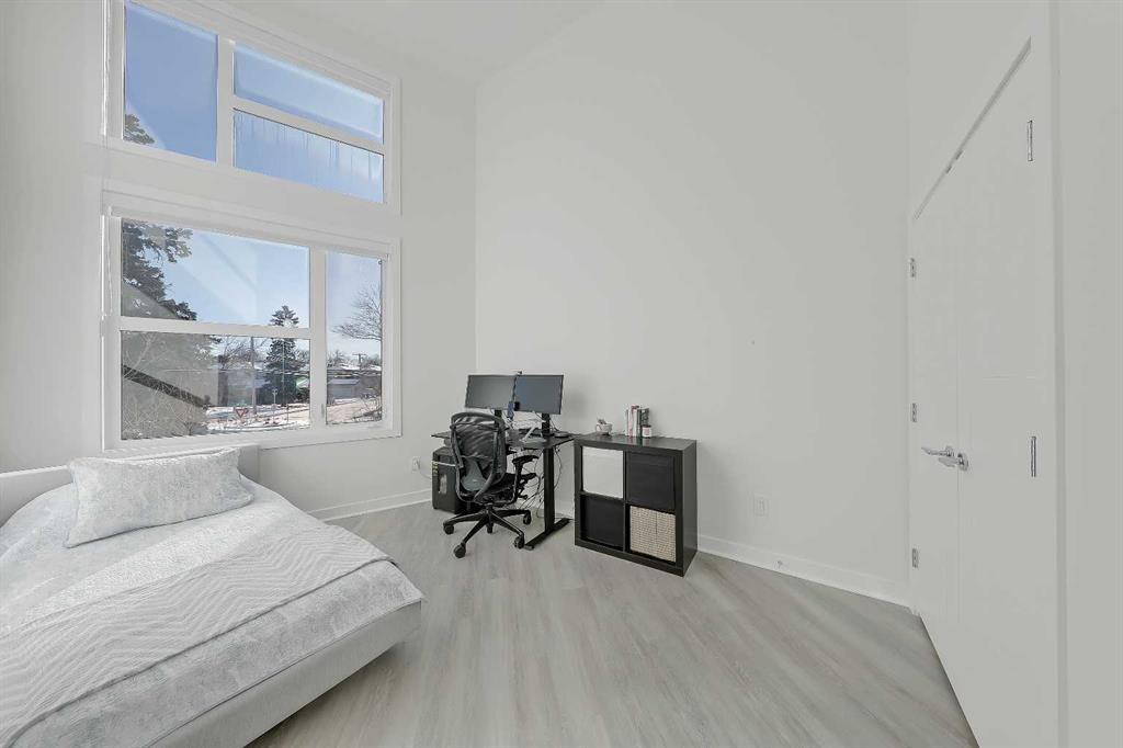 **OPEN HOUSE THIS WEEKEND: SATURDAY, FEBRUARY 7, FROM 2:00 PM - 4:00 PM** Welcome to this rare end unit fronting green space. This highly upgraded Bordo townhome showcases over 2,300 sq ft (over 1,700 sq ft above grade), soaring ceilings, a private fenced yard, a fully developed basement, and a rare attached insulated garage. This home delivers the comfort and scale of a detached home with the ease of low-maintenance inner-city living. The bright main floor features 10-ft ceilings and expansive windows that fill the space with natural light. The contemporary, warm living room has a massive window overlooking the adjacent green space. It centres on a tiled feature wall with a gas fireplace and is enhanced by built-in ceiling speakers. The rear kitchen anchors the layout with a quartz waterfall island and counters, a sleek glass backsplash, stainless steel appliances including an induction cooktop, a dual-basin undermount stainless steel sink, a discreet hood fan, and ample high-end cabinetry. A powder room and a mudroom with direct access to the attached garage add everyday functionality. Upstairs, the primary suite impresses with 16.6-ft ceilings, oversized windows, a large walk-in closet, a bonus loft, and a spa-inspired 5-pc ensuite featuring heated tile floors, a dual-sink vanity with quartz and storage, a soaker tub with tile surround, and a fully tiled stand-up shower with 10mm glass door. A second bedroom with 14.5-ft ceilings, a full 4-pc bathroom, a versatile bonus room, and a convenient upper-floor laundry closet complete the upper floor. The fully developed basement features 9-ft ceilings, a spacious rec room, plus a third bedroom and a full bathroom—ideal for guests or for use as a home office. Mechanical upgrades include a high-efficiency furnace, humidifier, and HRV system. Enjoy a private fenced yard with a gas line for a BBQ, plus immediate access to the large green space outside the door. Located in the heart of Renfrew, just minutes to downtown, 16 Ave, Edmonton Trail, Deerfoot Trail, schools, parks, shopping, Calgary Zoo, and the Renfrew Aquatic Centre, this home offers outstanding inner-city convenience. Schedule a private showing today!