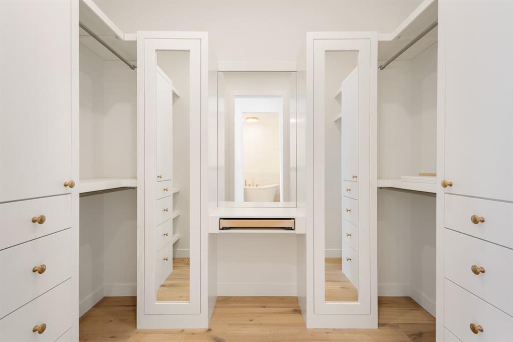 Exclusive pre-sale opportunity in the highly sought-after community of Richmond. This stunning residence, designed by JTA Designs, offers over 2,400 square feet of thoughtfully planned living space. Upon entry, a grand foyer welcomes you into the main level, featuring soaring 11-foot ceilings and elegant hardwood floors throughout. The formal dining area, accented with custom wainscoting, is filled with natural light from expansive windows. The designer kitchen boasts a striking 14-foot fluted curved island with a Taj Mahal countertop, premium appliances, gold and black fixtures, white oak shaker cabinetry, a plaster chimney hood, a black granite sink, and under-cabinet lighting. The spacious great room is anchored by a custom tiered gas fireplace finished with fluted tile, built-in shelving, and cabinetry. A separate mudroom with built-ins and a bench provides ample storage. Upstairs, nine-foot ceilings and hardwood floors continue through the hallways, leading to a beautiful primary suite with vaulted ceilings, wainscoting, and a luxurious five-piece ensuite complete with heated floors and a steam shower rough-in. Two additional bedrooms, one with private access to a three-piece bath, and a convenient laundry room complete the upper level. The fully finished basement includes a large recreation area, an additional bedroom, and a three-piece bathroom. Both units are available. Contact us today to schedule your private tour.
