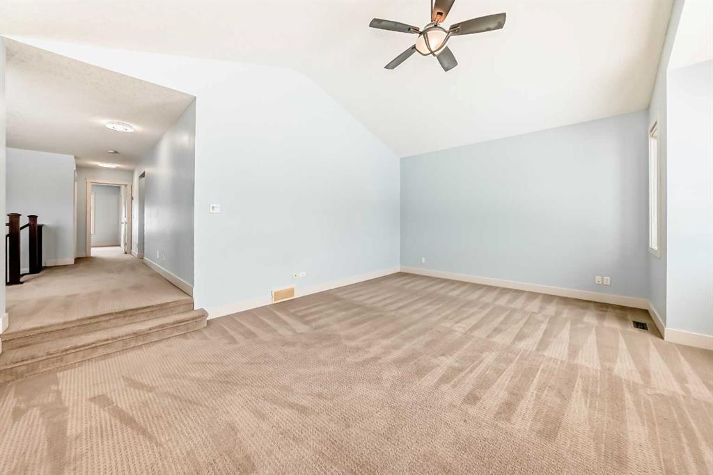 Upstairs you’ll find three generous bedrooms, 3.5 bathrooms, and a bright bonus room with soaring 15-foot ceilings, creating an inviting space for family living. The fully developed basement includes an entertainment room finished with luxury vinyl plank flooring upgraded in 2022, perfect for movie nights, a games area, or a teen retreat.