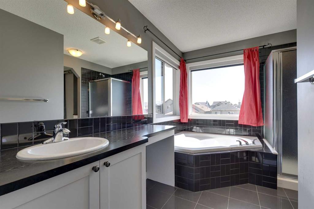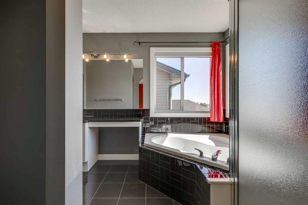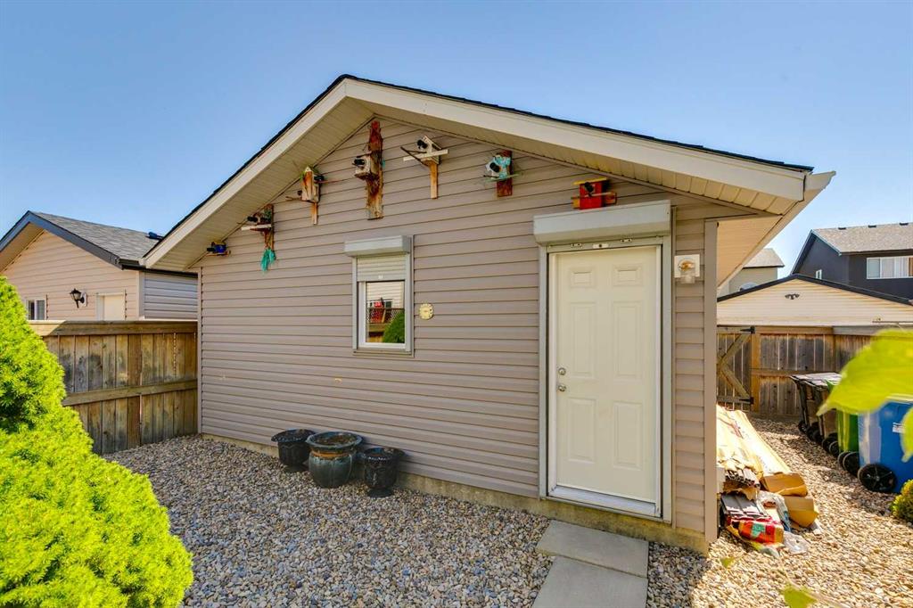 Unbeatable value! Beautifully upgraded & meticulous family home on a manicured south exposure lot, just ½ block to the elementary school. This expanded “Monaco” by Shane Homes is a spacious 1,658 sqft two storey, with additional 500 sqft of professional development in the lower level. From the moment you arrive you’ll appreciate the pride of ownership and attention to detail. Spacious living room with bay window and full-size dining area which can also be a great space for a computer station. The country-style kitchen is a highlight with extensive cabinets, pull-out drawers, step-in pantry, full custom file backsplash and center island with a 2-stool breakfast bar. The adjoining eating area has plenty of room for a large family to enjoy meals together. A full-size picture window with sun guard glass, brings in an abundance of natural light and overlooks the deck; garden door leads directly to the deck, yard and detached garage (back lane access). Completing the main floor is a ½ bath for guests. The upper level has 3 spacious bedrooms, a 4-piece bath and laundry which is convenient for a busy family. The primary bedroom offers privacy with a spa-inspired ensuite and walk-in closet. The lower level has a 4th bedroom (window to egress), 4-piece bathroom, space to add a family room and plenty of storage too. Enjoy the sunshine on the deck then retreat inside to the beautifully air-conditioned home. Many upgrades include new roof shingles & eaves in 2025, custom tile flooring, central air conditioner, water softener, custom built cedar fence with “hidden” front & back gates, security roll shutters on all lower level windows, main floor windows & doors, plus on the garage! Retired couple spent 6 months travelling since building this home, so very little wear & tear! Smoke-free. Best value in Saddle Ridge!! Immediate possession.