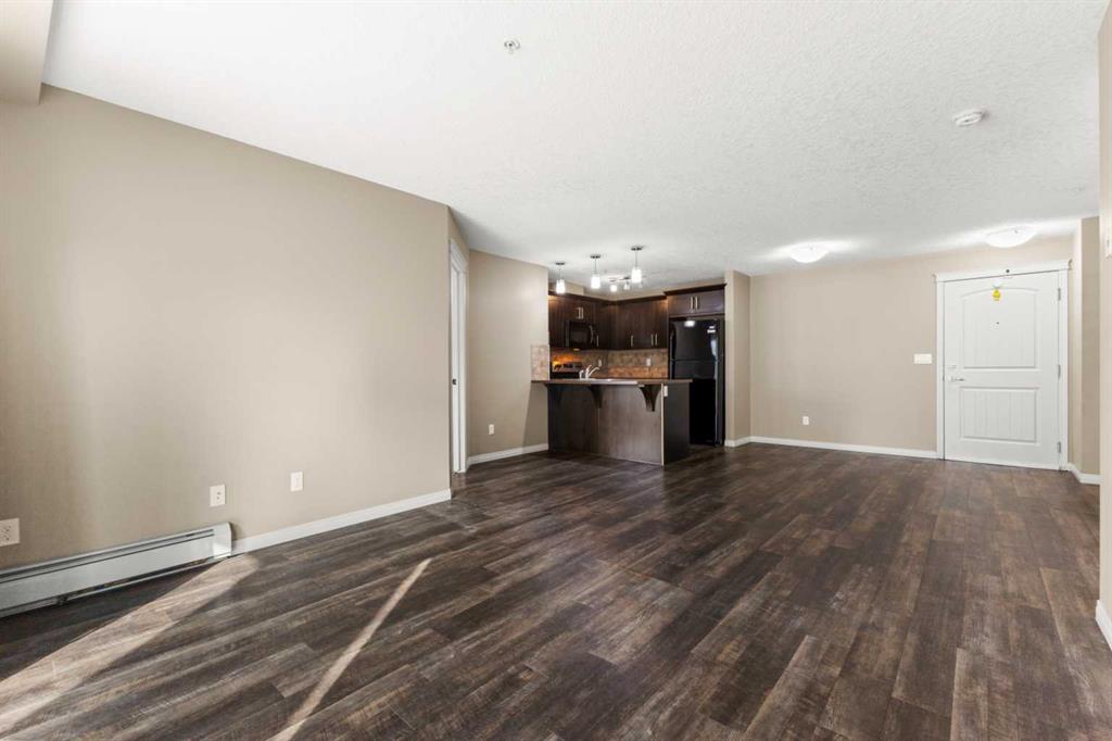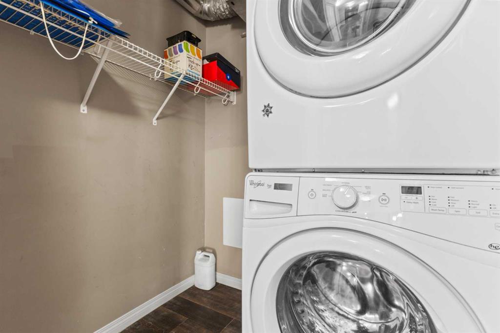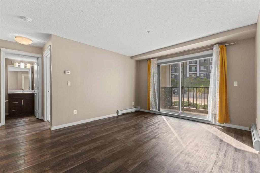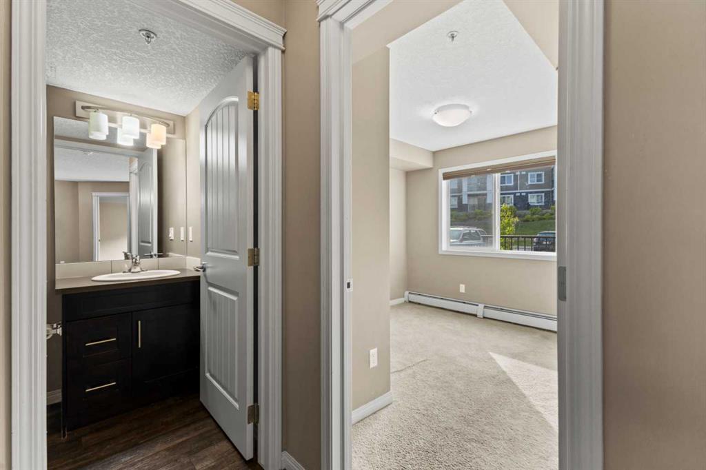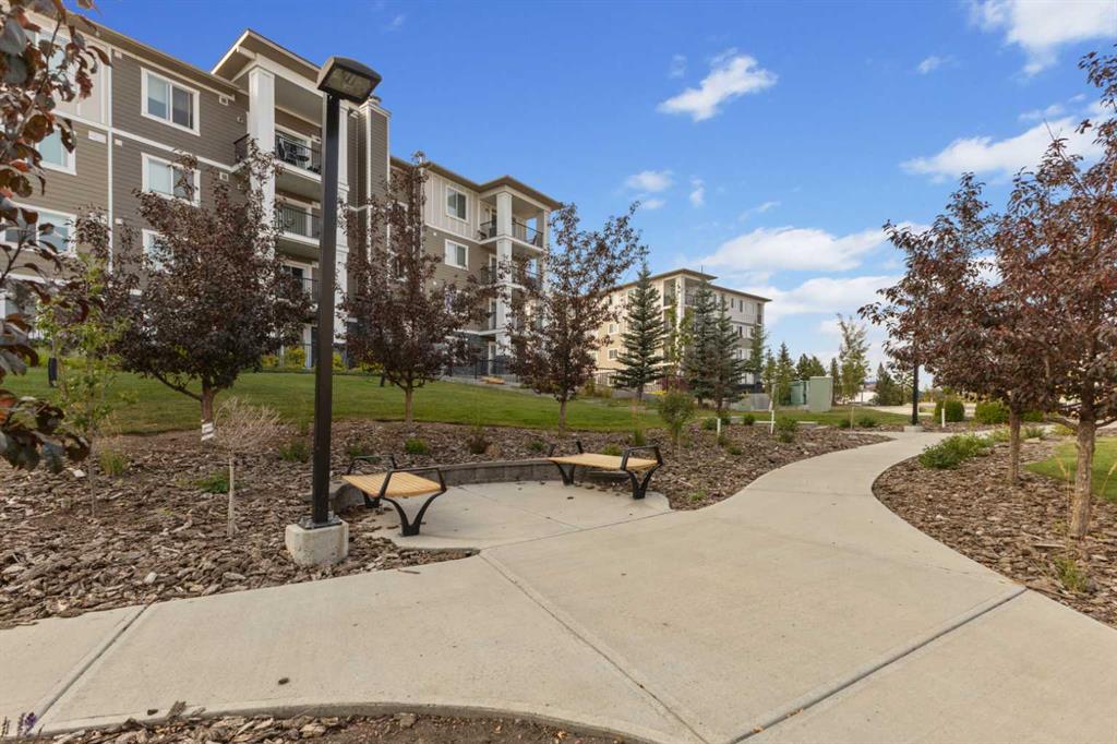 Experience the best of comfortable, modern living in this bright, open-concept condo. The design centres around ease and flow, with a kitchen that opens directly into the living room, making daily life and entertaining a breeze. Benefit from the ultimate convenience of in-suite laundry. Step outside to your remarkable 30x6 foot west-facing covered patio, providing a private sanctuary to relax and enjoy the sun's warmth. This home also features sleek vinyl plank flooring, a dedicated primary bedroom with its own ensuite bathroom and a spacious walk-in closet for all your storage needs. This condo also has 2 above ground titled parking stalls. Situated in the desirable Sage Hill
