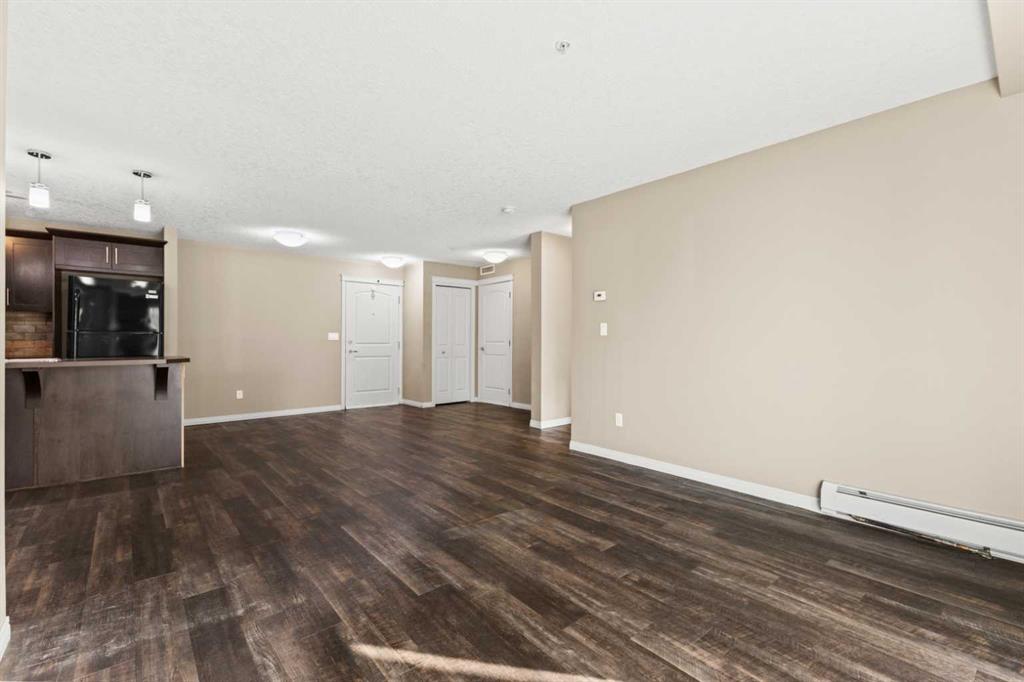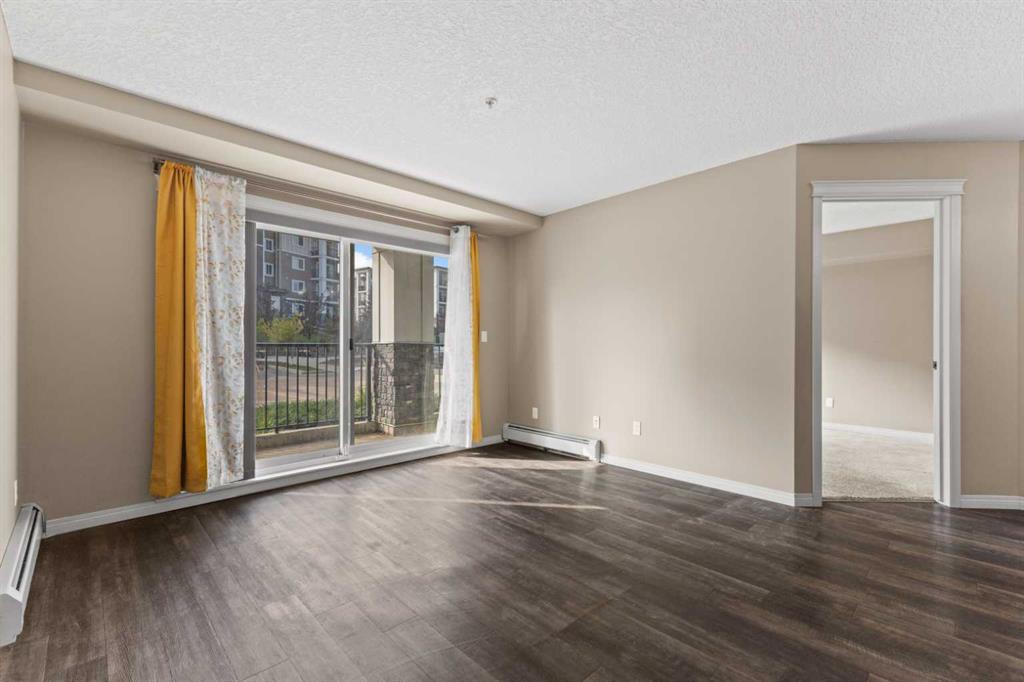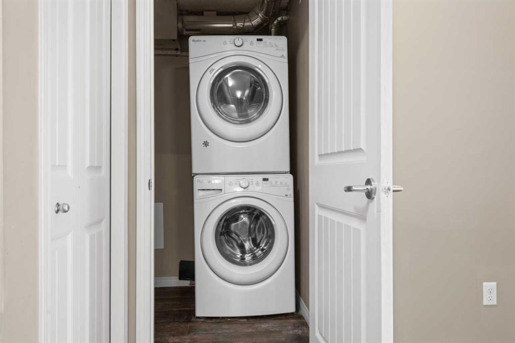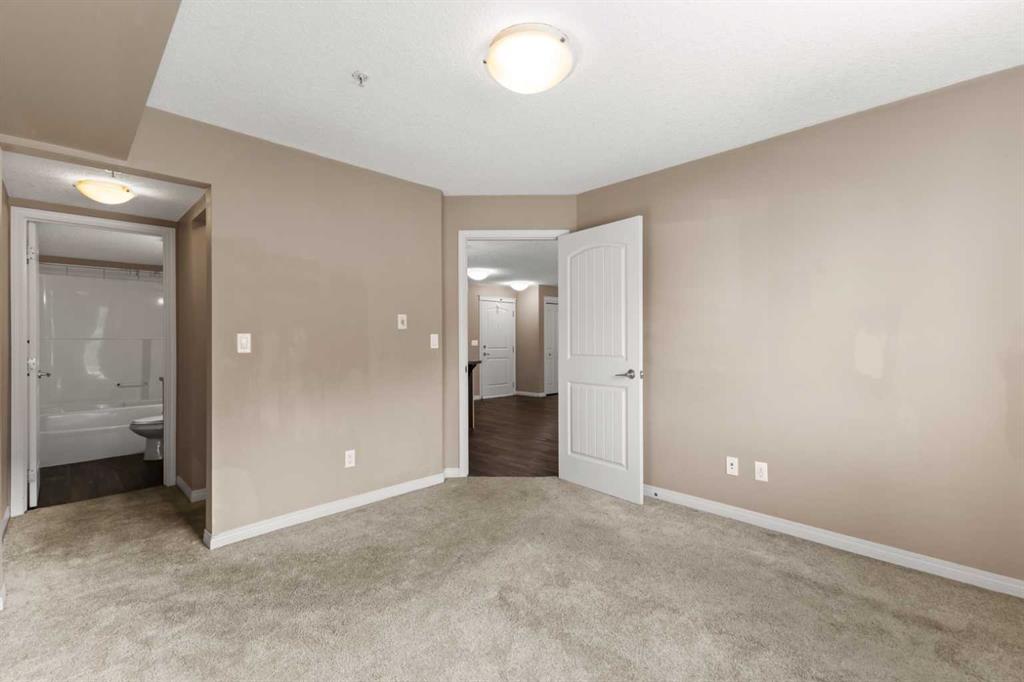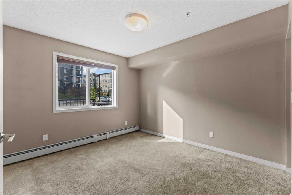 Experience the best of comfortable, modern living in this bright, open-concept condo. The design centres around ease and flow, with a kitchen that opens directly into the living room, making daily life and entertaining a breeze. Benefit from the ultimate convenience of in-suite laundry. Step outside to your remarkable 30x6 foot west-facing covered patio, providing a private sanctuary to relax and enjoy the sun's warmth. This home also features sleek vinyl plank flooring, a dedicated primary bedroom with its own ensuite bathroom and a spacious walk-in closet for all your storage needs. This condo also has 2 above ground titled parking stalls. Situated in the desirable Sage Hill