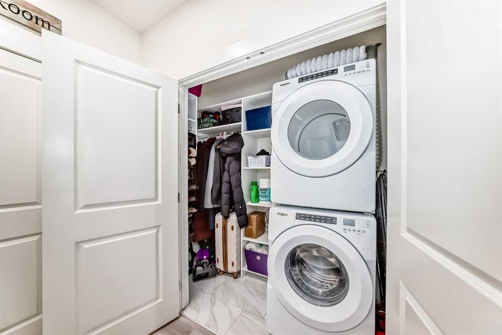 Two Parking Spots | Two Bedrooms | Two Full Bath | Sunny End Unit | Highly upgraded home! Welcome home to this highly upgraded corner unit in Sage Hill Park II, where luxury meets affordability. Located next to a tranquil natural reserve, this beautiful residence is perfect for nature lovers who enjoy peaceful strolls. This sunny end unit features two spacious bedrooms and two full bathrooms, including an upgraded ensuite bathroom that transforms your primary suite into a true retreat. With 9 ft. ceilings and additional windows, the living space is filled with natural light, enhanced by brand-new zebra window coverings and stylish upgraded lighting throughout. The stunning kitchen boasts every upgrade offered by the builder, including full-height cabinets, an extra bank of cupboards, and elegant Quartz countertops. The eat-at kitchen island invites friends and family to gather as you prepare delicious meals with upgraded stainless steel appliances. The large living room provides ample room for various furniture arrangements, making it ideal for both relaxation and entertaining. This home also includes two highly desirable parking spots—one heated underground and one surface spot—conveniently located just around the corner from your entrance. The second parking spot, valued at $20,000, is a great bonus; if you only need one, you have the option to rent it out for approximately $200 per month. Additionally, you'll find a large front hall closet with upgraded built-in storage and a stackable washer and dryer for added convenience. Stay comfortable year-round with air conditioning and enjoy the outdoor living space on the expansive west-facing balcony, perfect for your gas BBQ (with a gas line ready for use) and outdoor furniture. This enclosed balcony is a fantastic spot to relax during the warmer months, and it features a gate that makes it easy to take walks or let your pet out; it’s a truly pet-friendly complex with no size restrictions for pets (approval required). Feel secure in your new home with a recently upgraded security system and access fob. The low condo fees of just $345.87 per month cover all utilities except electricity and are managed exceptionally well. Sage Hill is a community where you’ll find everything you need within minutes, including grocery stores, Costco, Walmart, restaurants, and a new 24-hour Goodlife Fitness. This is the home that checks every box on your list and one where you will surely fall in love!