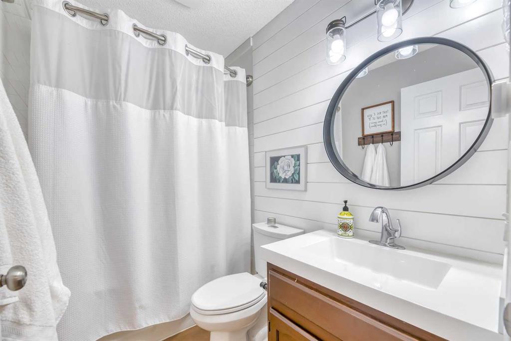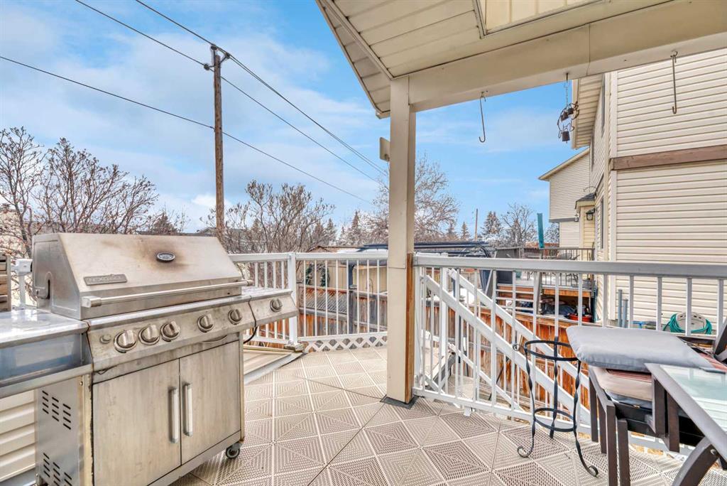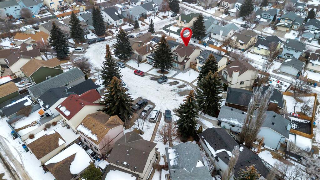 Welcome to this meticulously maintained, move-in ready home tucked away on a quiet cul-de-sac in the desirable community of Scenic Acres. This 3-bedroom, 3.5-bathroom home with a double attached rear-facing heated garage combines thoughtful updates, functional space, and a warm, family-friendly layout. Pride of ownership is evident throughout, with no poly-B plumbing, Lux argon-filled windows, a newer roof, air conditioning, fresh paint, and designer window coverings already in place. The inviting main living area is anchored by a stunning rock-faced wood-burning fireplace, creating a cozy focal point for everyday living. The beautifully updated kitchen features refreshed appliances and flows seamlessly into an additional family room, offering wonderful flexibility for a growing or busy family. Step outside to the south-facing rear deck, complete with a natural gas hookup for the BBQ, where west and south exposures provide mountain views and all-day sun. The lower Rundle stone patio, complete with a new concrete rear walkway, creates the perfect setting to relax and enjoy evenings in the yard. The fully developed lower level adds exceptional value with a media/games/multipurpose room, ideal for entertaining, hobbies, or family movie nights. A new washer and dryer, ample storage, and generous living spaces throughout make this home as practical as it is welcoming. A fantastic opportunity to own a thoughtfully upgraded home in a sought-after cul-de-sac location — offering comfort, functionality, and space for every stage of family life.