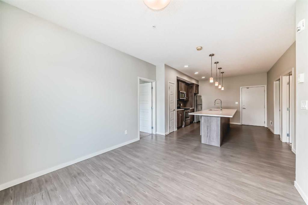 This sleek 2 bedroom, 2 bath condo is waiting for you. This unit's open floor plan is spacious and bright with 9 ft ceilings throughout. The kitchen features a large quartz island with plenty of seating space and cupboards. There is a large laundry/storage room which is plenty big enough to store your bikes and possibly camping equipment for your great weekend get aways. There is a spacious deck for relaxing after a busy day or having friends by for a bbq. From the deck there is a great view of the South Campus Hospital which is only a few minute walk. Also is this great community is the new YMCA which is just across the street from this awesome property. Also featuring in the neighbourhood is a high school, library, movie theatres, plenty of restaurants, shopping, parks and playgrounds. This building is pet friendly with approval of course. There is titled underground parking plus underground and outside visitor parking. Don't delay call your favourite Realtor today for your private showing.