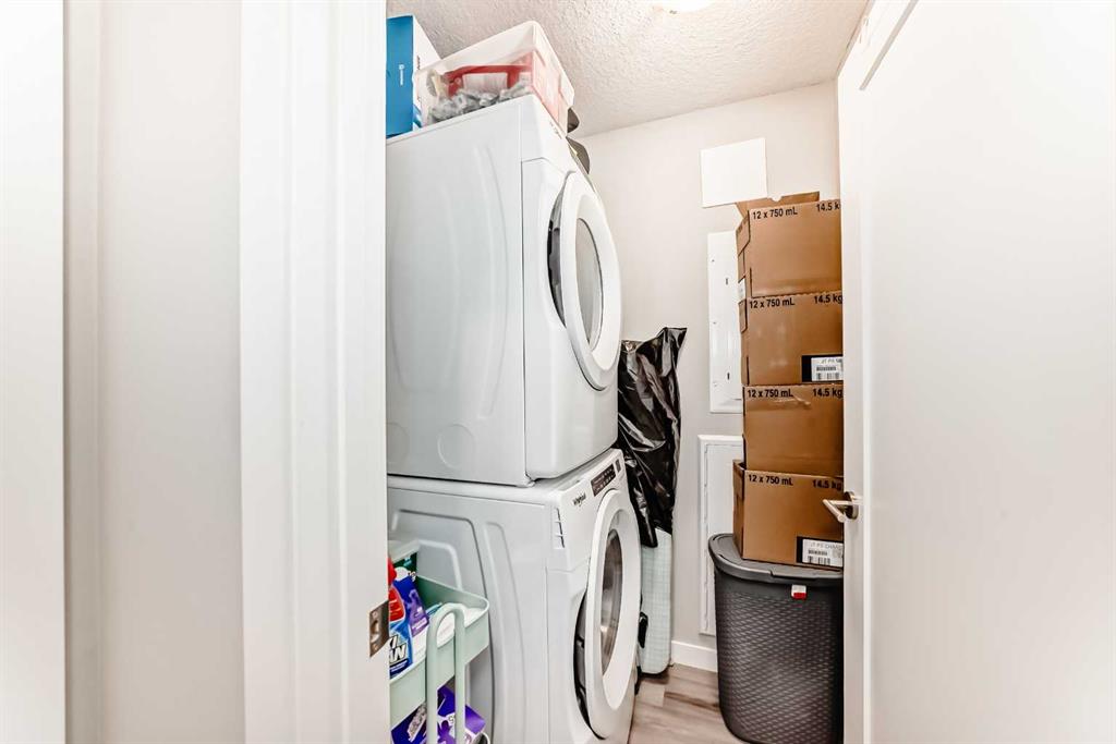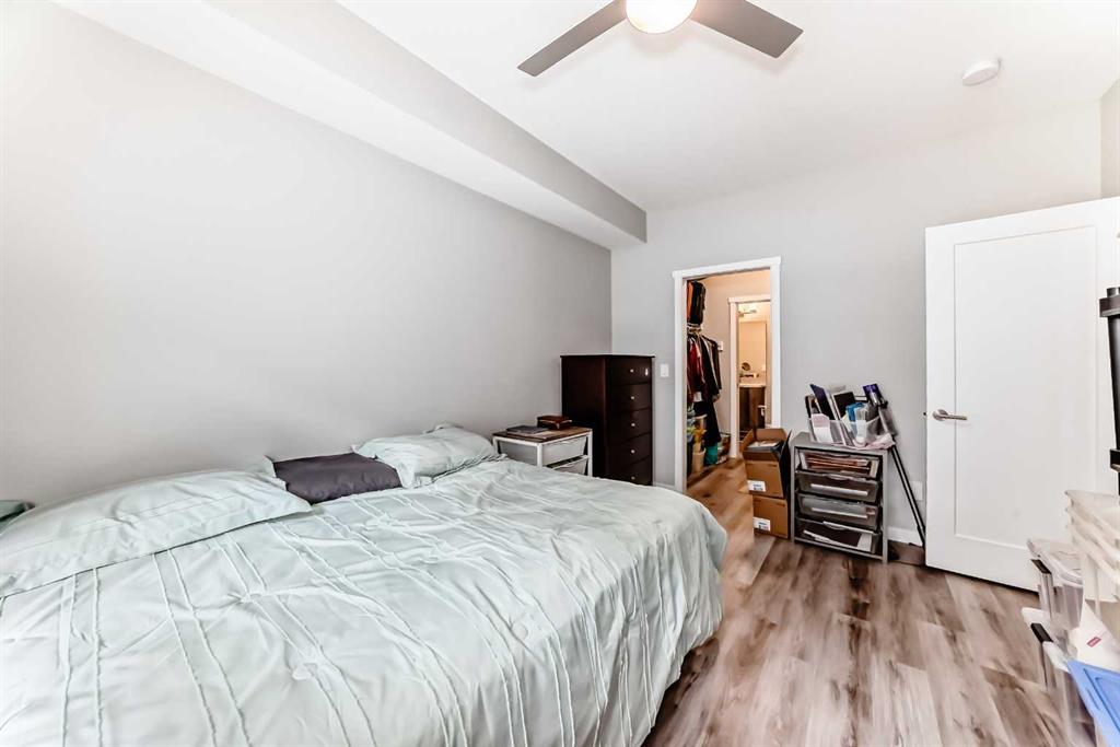 Absolutely striking combination of flooring, cupboards and backsplash in this ground level 2 bed listing in Shawnee Slopes. This is a larger 2 bed/2bath combo and has an extraordinary front patio with street access - perfect for receiving guests or dropping off groceries! This quiet neighbourhood near Fish Creek Park and the C-Train is perfectly situated, with shopping and schools close by and an abundance of greenspace. You will find this unit has everything you need with ample kitchen storage, large bedroom closets, plenty of natural light, high ceilings, in suite laundry, and titled parking and storage. The primary bedroom could easily fit your king-sized bed and furniture while the second bedroom easily fits a queen. This has been a rental property and well maintained.