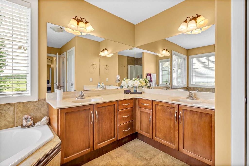 Upstairs, you’ll find three generously sized bedrooms including a spacious primary suite with two walk-in closets and a 5-piece ensuite featuring dual vanities, a deep soaker tub, separate glass shower, and a door for the toilet. There is a huge bonus room boasting beautiful northeastern views of morning sunrise. The bonus room includes surround sound wiring and can easily be used as a fourth upstairs bedroom or family living space. The fully developed basement continues to impress with a fifth bedroom, a large recreation and media room with surround sound, a home gym or flex area, and a full bathroom with heated tile floors. With premium finishes throughout, this home combines comfort, style, and functionality—perfectly situated on a quiet, family-friendly street in the desirable community of Sherwood.