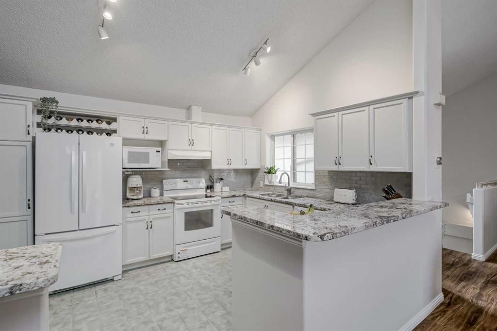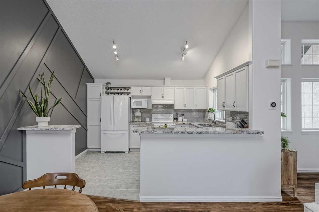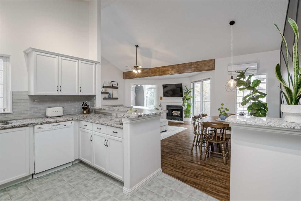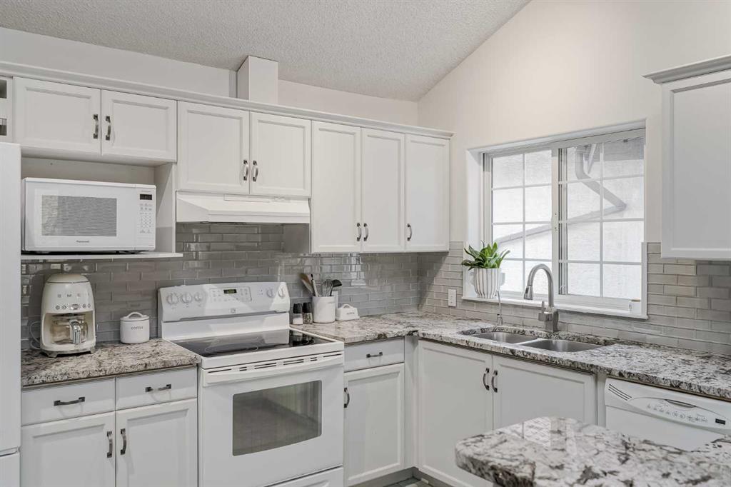 Is this THE BEST PRICED TOP-FLOOR, PET FRIENDLY BUNGALOW TOWNHOME WITH AN ATTACHED GARAGE in all of Signal Hill?! We sure think so! Why keep paying rent when you can move in and start building equity immediately? Welcome to Cactus Ridge in the very heart of SW Calgary. Forget about having to update and upgrade an old apartment unit for months on end and enjoy —from the moment you move in— this very TASTEFULLY UPDATED & UPGRADED, open-floor plan layout combining soaring vaulted ceilings in both a stylish living room & dining room, AND a generous-sized, well illuminated, and granite-clad modern kitchen beside them. Look just past the dining table and find one of our favourite features of the home, the MASSIVE SOUTH-FACING BALCONY. One of the largest decks you will find within the complex and within an interior location. Within this bungalow's near 1150 sq ft of developed space you can find also TWO MASSIVE BEDROOMS, one of which is conveniently used as an office at the moment for those with a hybrid schedule or 100% work from home needs. Forget about a desk tucked away in a dark corner of your home, your future home office has 10+ vertical feet of windows, creating a phenomenal workspace for both computer-intensive or creative roles alike. Like all other spaces within, your primary bedroom is also oversized, both with a large walk-through closet and an ensuite boasting a new bathroom cabinet and sink. Further adding to the rarity and noteworthiness of this unit, your CONDO FEES INCLUDE HEAT!, which makes the in-floor heating all the more appealing and allows you to relax and enjoy the cool winter months.