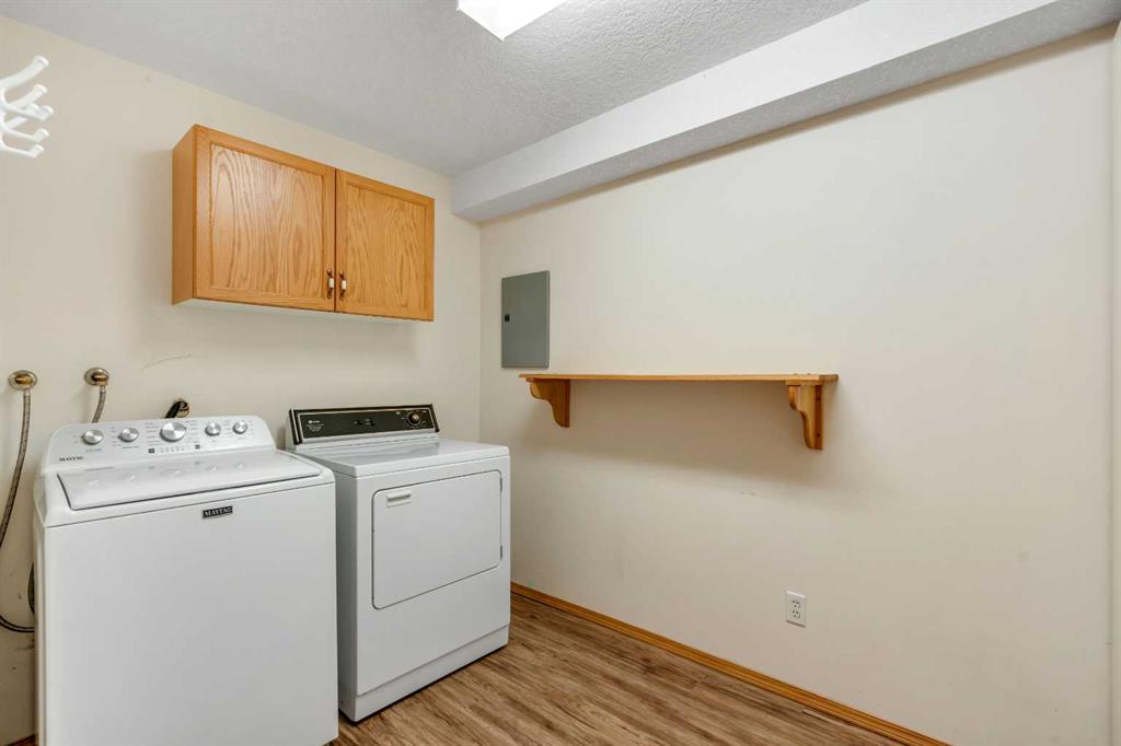 The primary suite includes a generous walk-in closet and a private 4-piece ensuite bath. A second bedroom and nearby 3-piece bathroom provide comfort and flexibility for guests. The large in-suite laundry room offers impressive storage, complemented by an additional secure storage locker conveniently located near your titled secured underground parking stall, positioned close to the elevators. There is also ample visitor parking for guests.
