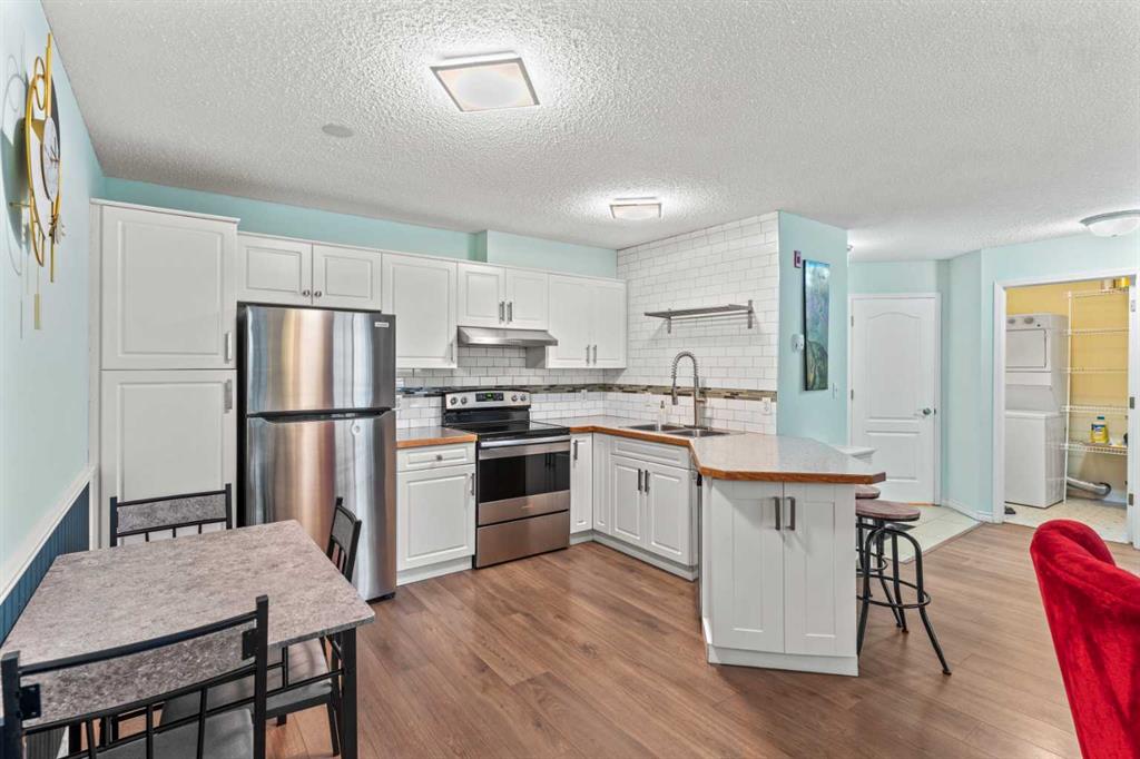 breakfast nook! You will love the newer appliances, including a brand-new stove &refrigerator! The kitchen had a lovely tile backsplash