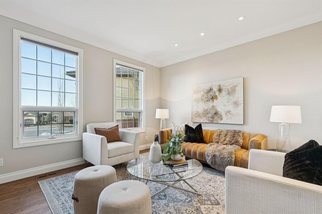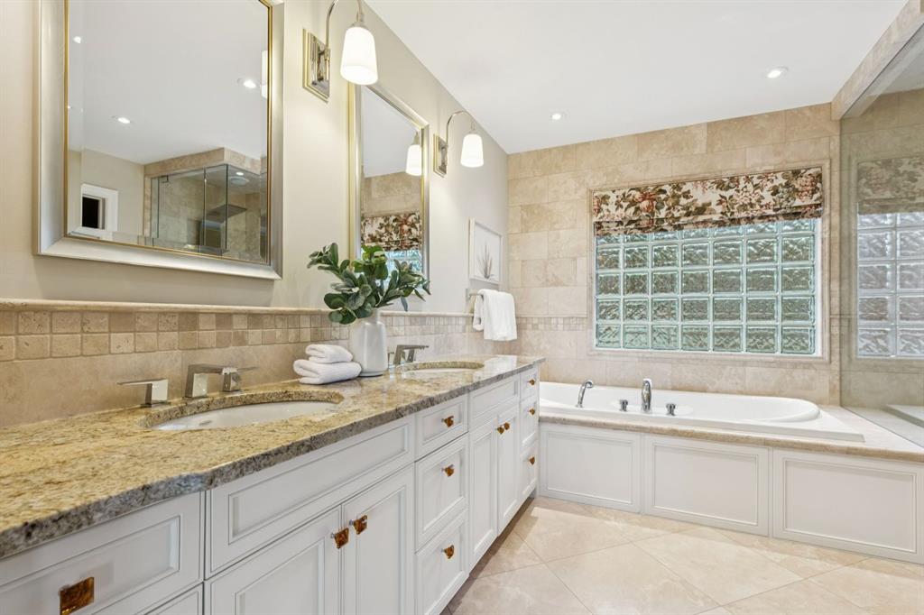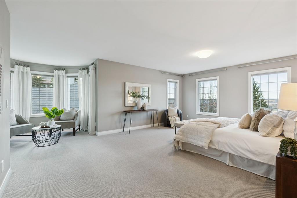 Discover this exceptional property boasting over 0.28 of an acre nestled at the corner of a child-friendly cul-de-sac with stunning west-facing mountain views. This spacious 1996 home, encompassing 2,734 sq ft above ground and an additional 1,373 sq ft in the basement, is ready for its new owners! The expansive lot features mature trees and a majestic larch tree, offering both beauty and shade. Step inside to find this traditional/ transitional designed home highlighted by open entrance with a centre curved staircase. The main floor includes a cozy family room, a formal dining and iving area, and a beautifully renovated kitchen equipped with top-of-the-line Wolf stainless steel 6-burner gas oven/ range with a decorative hood fan, a Sub-Zero fridge, kinetico filtered water for both the sink and ice maker, dual freezer drawers, built-in microwave and Meile dishwasher. The large centre island with a flat breakfast bar seamlessly connects to the kitchen eating area, which provides access to the new deck and BBQ space—perfect for entertaining! Convenience continues with a main floor laundry room, complete with a window, sink, and ample cabinet and counter space, making laundry a breeze. You'll appreciate the oversized 31x22 finished garage, equipped with extensive storage solutions and cabinetry, plus a man door for easy access to the backyard. On the upper floor, discover three bedrooms and an upper office featuring a private balcony with captivating front views. The expansive primary suite includes a cozy sitting area, a luxurious ensuite, heated tile floor, dual sinks, jacuzzi tub, new shower, a walk-in closet plus separate linen closet, The bright main bathroom offers two sinks and a window, complemented by another of the three upper floor linen closets. The vast basement is an entertainer's dream, showcasing a built-in wall unit and high ceilings. It features a fourth bedroom, a spacious craft room with abundant shelving, sink, and a hood fan for creative projects. Additionally, a spacious 4-piece bathroom with a tub and shower, along with a 900-bottle temperature-controlled separate wine room, providing the perfect blend of functionality and comfort for entertaining. This home is bright , enjoying all day sunlight and being across from a green space island which protects the home from the Main Street. Other perks, second owner and home sides on to pathway with cedar fence for privacy on the side and has a wonderful long driveway to provide guests access. Note: No front sidewalk to shovel! Don’t miss your chance to live in one of Calgary's most sought-after neighborhoods - Close to major Highways, Schools, Shopping, Pathways, Green Spaces and LRT w/ Convenient Transit options as well as Highways for ease to Downtown or Mountain excursions. Don't miss out! Schedule your showing today.