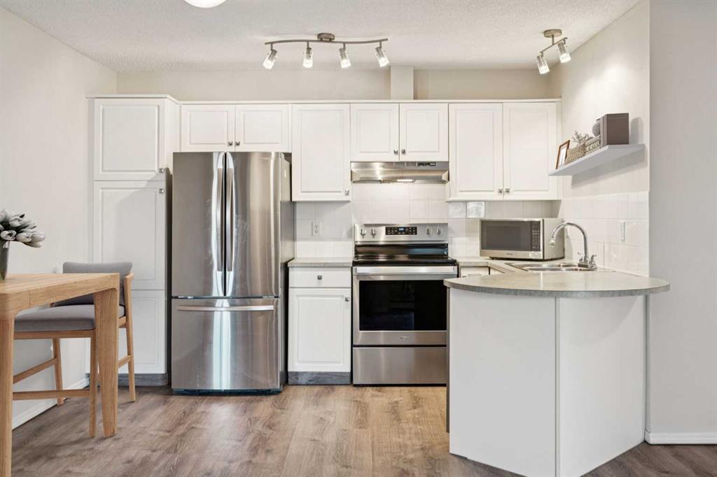 Discover effortless SW Calgary living in the heart of Signal Hill. This bright, updated 2-bedroom, 2-bathroom condo is tucked inside a quiet, well-managed, barrier-free building with secure entry and an elevator. The open-concept design is perfect for everyday living and entertaining, featuring newer flooring, updated appliances, modern light fixtures, and fresh paint—all finished in a clean, contemporary palette that feels instantly inviting. Relax by the cozy corner gas fireplace, enjoy the convenience of in-suite laundry, and unwind on your large, private covered balcony, ideal year round and with an exterior storage locker just steps away.