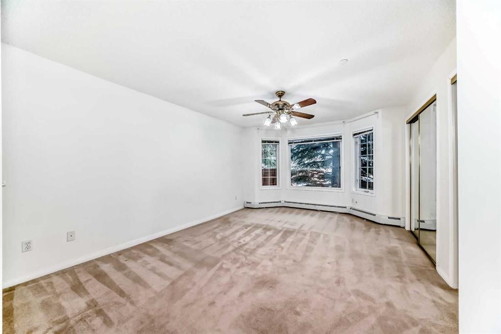 The primary bedroom is generously sized, featuring a bay window, dual closets and a three-piece ensuite bathroom. The secondary bedroom accommodates a double bed and can easily serve as an office or den. Additional features include in-suite laundry, secure, assigned underground parking and a dedicated private storage room. There is a generous balcony bricked halfway up for privacy and shaded by beautiful evergreens. It also features a convenient BBQ gas line, perfect for outdoor grilling.