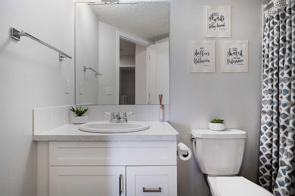 Amazing Opportunity in The Pavillions of Richmond Hill. Welcome to this bright, fully renovated and well-maintained 3rd-floor condo in the desirable community of Signal Hill. Offering 794 sq. ft. of comfortable living space, this beautiful home combines functionality with an unbeatable location. Step inside to an inviting layout where large windows fill the living space with natural light. The spacious living room, featuring a cozy gas fireplace with mantel & tile surround, leads directly to a private covered balcony - your own quiet retreat overlooking mature trees and the mountains. The kitchen is designed for convenience with new stainless steel appliances and generous counter space. The primary bedroom features a private 4-piece en-suite, while the versatile second bedroom is ideal for guests or a home office. With titled underground parking, a large private storage room, and in-suite laundry with new washer & dryer, every detail has been considered. Located within within walking distance to all the amenities like Westhills Towne Centre, wide variety of shopping, restaurants, cafes, a movie theatre, and more. With easy access to transit, downtown Calgary, and quick routes to the mountains, this location truly offers the best of both city living and outdoor adventure. Call for you private showing today!