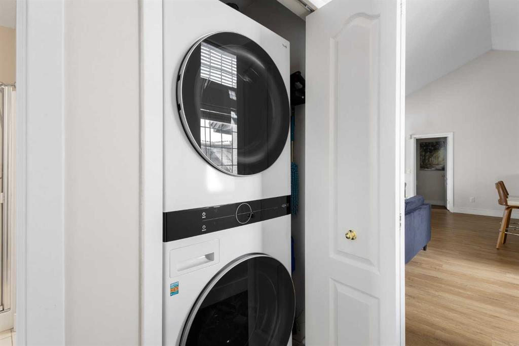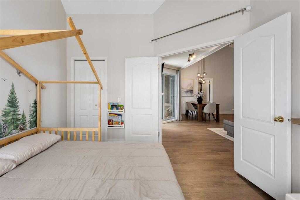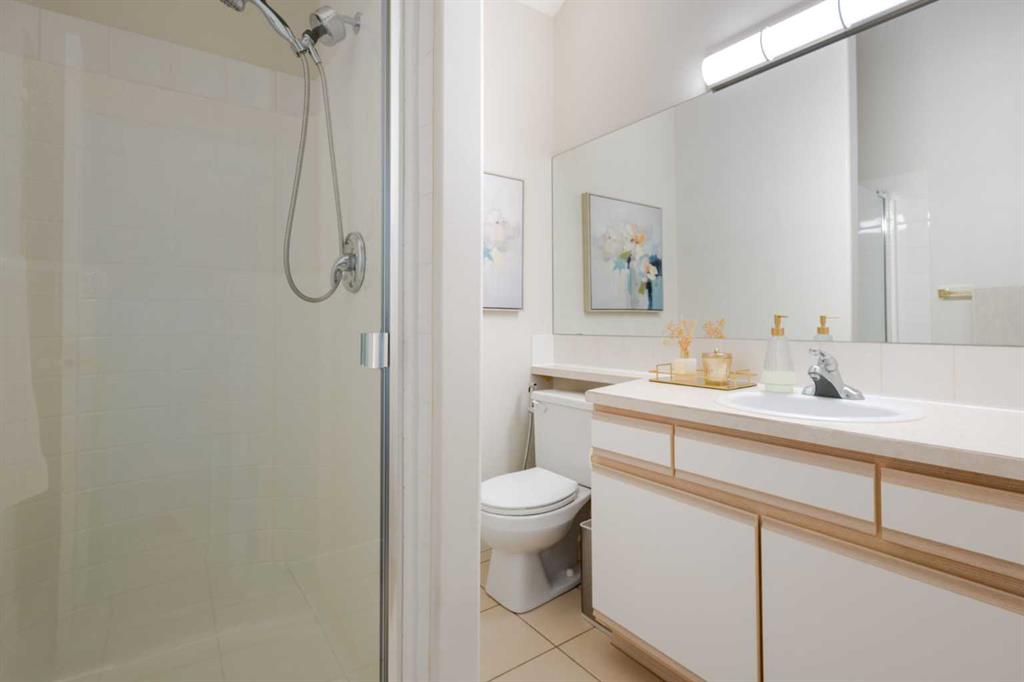 Luxurious comfort is provided by underfloor heating that extends from the living areas to the private attached garage, ensuring a dust-free environment and warm transitions during Calgary seasonal changes. Smart home security enhancements include a numeric code entry and a comprehensive camera system at the front door, balcony, and garage. For added convenience, you assigned stall is directly beside the unit, and ample visitor parking makes hosting your guests even easier.
