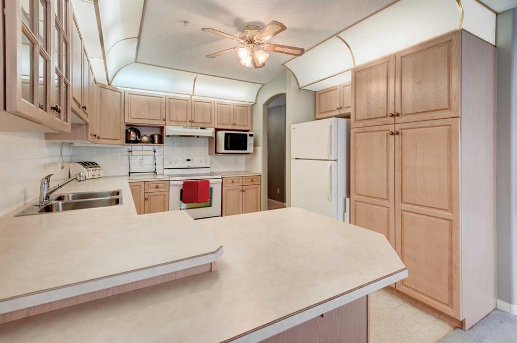 Welcome to the highly sought-after 55+ community of Sierras West in Signal Hill — offering comfort, convenience, and an exceptional lifestyle. This spacious 2-bedroom, 2-bathroom condo is ideally located on the quiet side of the building, backing onto peaceful green space and just steps from the elevator for added convenience. A large foyer welcomes you into the bright and sunny living room, featuring access to an oversized private deck — perfect for enjoying your morning coffee or relaxing outdoors. A charming two-sided gas fireplace, complete with a built-in curio cabinet, creates a warm and inviting separation between the living and dining areas. The well-designed kitchen offers excellent counter space, ample cabinetry with convenient pull-out drawers, an eat-up breakfast bar, and includes all appliances. The adjacent dining room is bright and spacious, highlighted by a lovely bay window that fills the space with natural light. The primary bedroom features a generous walk-in closet and a private 4-piece ensuite. The second bedroom, complete with French doors and its own walk-in closet, offers flexibility as a guest room, office, den, or hobby space to suit your lifestyle. A spacious in-suite laundry room provides additional storage and functionality. Sierras West is a well-managed, non-smoking complex known for its outstanding amenities, including an indoor pool, hot tub, fitness centre, two party rooms (one with a full kitchen), craft and activity room, library, games area, workshop, car wash, and guest suites — everything you need for active and social living. This unit also includes a heated underground parking stall with a large storage room conveniently located directly in front, close to both the elevator and car wash. Ideally situated within walking distance to Westhills Shopping Centre, offering grocery stores, retail shopping, restaurants, pubs, and a movie theatre, with easy access to major roadways. Enjoy maintenance-free living in one of Signal Hill’s most desirable 55+ communities.