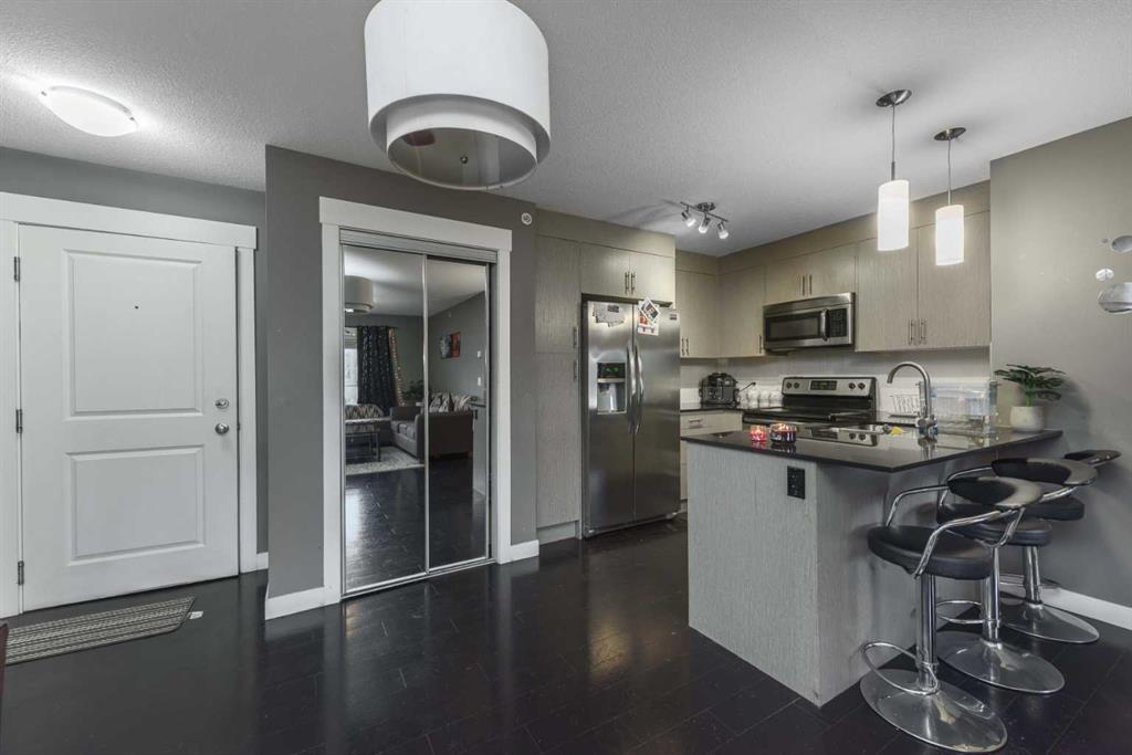Welcome to Skymills in NE Calgary! This quiet top-floor, open-concept condo offers 2 large bedrooms and 2 full bathrooms, designed for both comfort and functionality. The primary bedroom features his and her closets with full-length mirrored sliding doors and a private 4-piece ensuite, while the second bedroom is generously sized. The bright and spacious living room is filled with natural light and opens onto a low-maintenance balcony with a gas hookup—perfect for summer BBQs. The modern kitchen is finished with full-height cabinetry, stainless steel appliances, granite countertops, and cork flooring. Enjoy the convenience of in-suite front-load laundry, one heated titled underground parking stall, and a caged storage locker. HEAT & WATER are included in the condo fees, adding excellent value. Ideally located within walking distance to schools and major amenities, with easy access to Stoney Trail and Deerfoot Trail, a short drive to CrossIron Mills Mall, and close proximity to the airport. Book your showing today!
