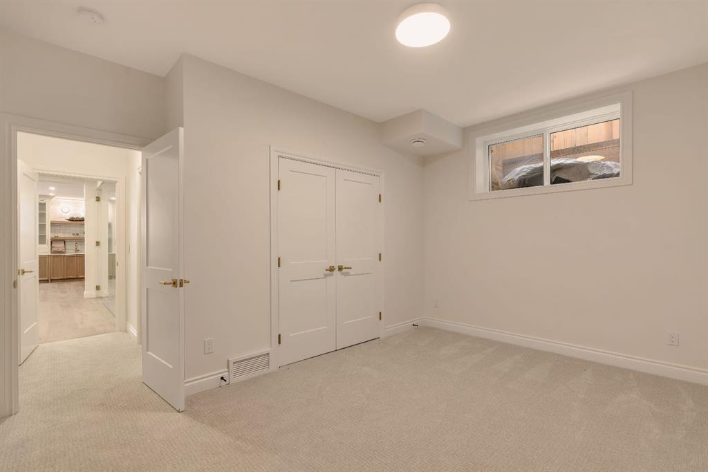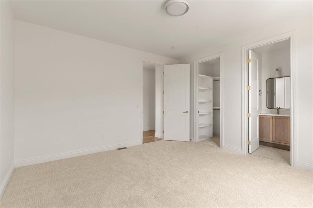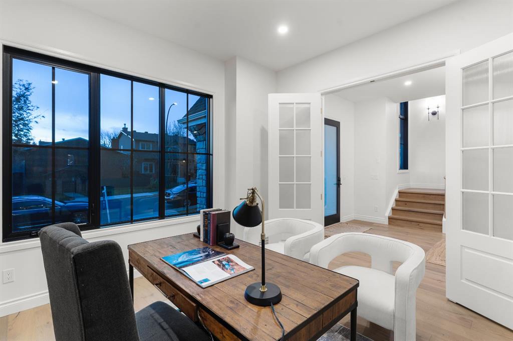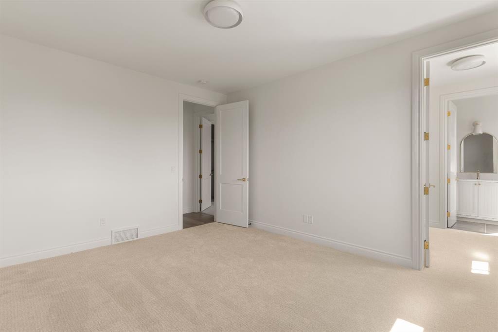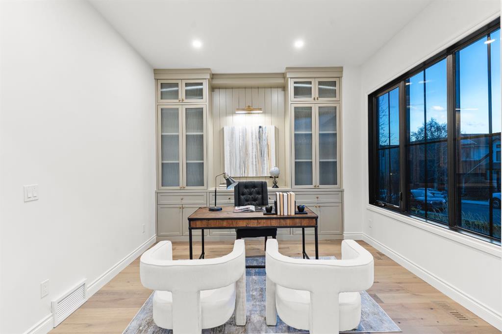 Welcome to The Bardot, an architectural masterpiece that seamlessly blends French cottage elegance with modern luxury in Calgary’s highly desirable Marda Loop. Thoughtfully crafted by Cedar Rock Homes and curated by Aly Velji Designs, this bespoke residence offers four bedrooms, 4.5 bathrooms, and a triple-car garage. The exterior showcases a stunning fusion of stone, stucco, and Hardie panel, paired with an aluminum cedar soffit entry, custom aluminum Lux windows, and a striking front entry door. A private backyard enhances the tranquility of the large composite patio with aluminum glass railing, while the fully landscaped and fenced yard ensures low-maintenance outdoor enjoyment. Inside, 10’ ceilings on the main level and 9’ ceilings on the upper and lower floors create a sense of volume and sophistication. The wide plank white oak engineered hardwood flooring extends across all floors, all solid core doors, accentuated by custom site-built cabinetry with maple dovetail drawers and Blum hinges throughout. The heart of the home is the gourmet kitchen, appointed with a premium JennAir appliance package including a 48” gas range, 48” panelled refrigerator, panel-ready dishwasher, and an island microwave drawer. A curved quartz slab island, custom cabinetry, and a sculptural hood fan set the tone for a refined culinary space. A butler’s pantry with extended storage and designer lighting and plumbing fixtures, including Brizo and Delta finishes, enhances functionality and style, while the spacious dining room features a custom oak sideboard, functional spaces like the large mudroom, adorned with bespoke millwork. A cozy gas fireplace anchors the main floor living room, while the foyer leads to a beautifully designed home office complete with custom cabinetry with glass doors, French doors, and floor plugs. Upstairs, three bedrooms each offer their own walk-in closets and all ensuites with heated tile flooring. The luxurious primary suite features a vaulted ceiling and a spa-inspired ensuite with an oversized steam shower (two rain heads, and hand bar), a freestanding tub, solid slab stone backsplash, and custom hanging metal mirrors. A dedicated laundry room with washer, dryer, sink, rod, and cabinetry completes the upper level. The finished basement offers additional entertaining and lifestyle spaces with a gym room, TV/game area, a full bathroom, a wet bar with beverage fridge, and generous storage. Mechanically, the home is equipped with dual-zone 96% efficient furnaces with humidifiers, a heat recovery ventilator, automatic water shut-off valve, and rough-ins for in-floor basement heating, air conditioning, vacuum flow, speakers, a security system, and exterior cameras. Every inch of The Bardot speaks to quality, comfort, and timeless beauty. Located in a quiet pocket of Marda Loop just steps from trendy boutiques, restaurants, dog parks, schools, and minutes from downtown, this home is the perfect harmony of prestige and practicality. Book your showing today!
