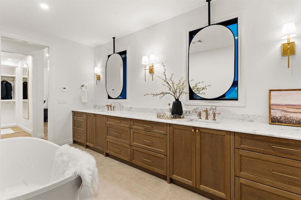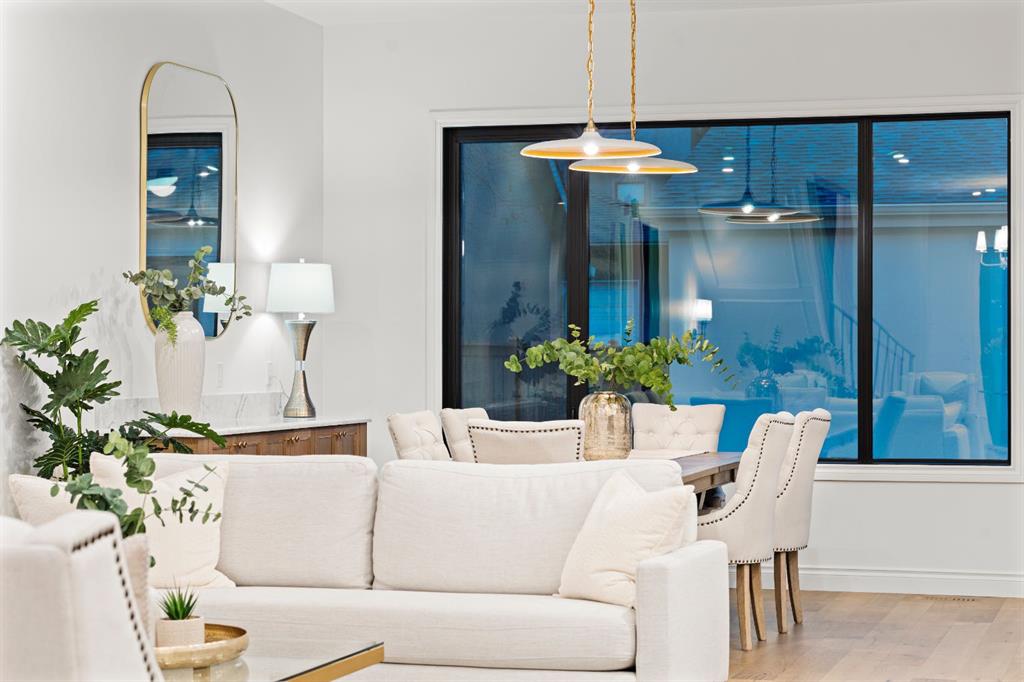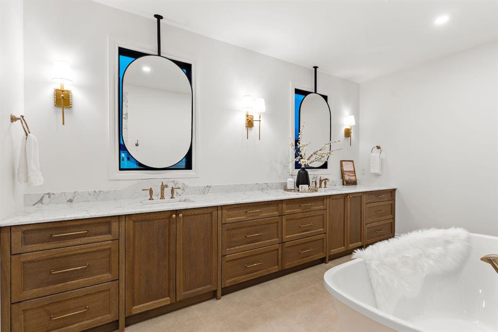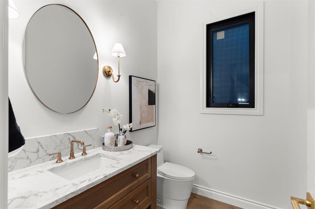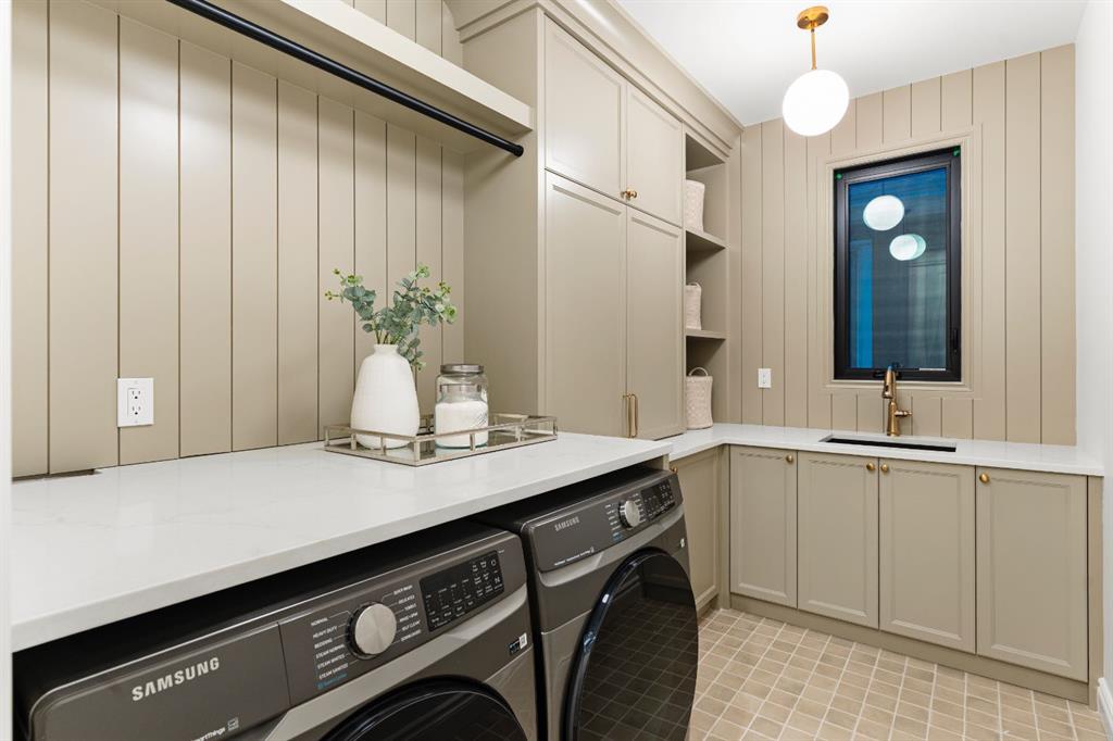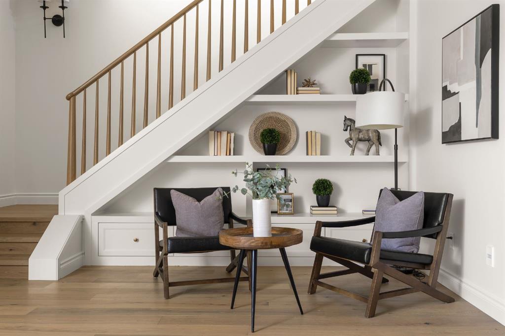 Welcome to The Bardot, an architectural masterpiece that seamlessly blends French cottage elegance with modern luxury in Calgary’s highly desirable Marda Loop. Thoughtfully crafted by Cedar Rock Homes and curated by Aly Velji Designs, this bespoke residence offers four bedrooms, 4.5 bathrooms, and a triple-car garage. The exterior showcases a stunning fusion of stone, stucco, and Hardie panel, paired with an aluminum cedar soffit entry, custom aluminum Lux windows, and a striking front entry door. A private backyard enhances the tranquility of the large composite patio with aluminum glass railing, while the fully landscaped and fenced yard ensures low-maintenance outdoor enjoyment. Inside, 10’ ceilings on the main level and 9’ ceilings on the upper and lower floors create a sense of volume and sophistication. The wide plank white oak engineered hardwood flooring extends across all floors, all solid core doors, accentuated by custom site-built cabinetry with maple dovetail drawers and Blum hinges throughout. The heart of the home is the gourmet kitchen, appointed with a premium JennAir appliance package including a 48” gas range, 48” panelled refrigerator, panel-ready dishwasher, and an island microwave drawer. A curved quartz slab island, custom cabinetry, and a sculptural hood fan set the tone for a refined culinary space. A butler’s pantry with extended storage and designer lighting and plumbing fixtures, including Brizo and Delta finishes, enhances functionality and style, while the spacious dining room features a custom oak sideboard, functional spaces like the large mudroom, adorned with bespoke millwork. A cozy gas fireplace anchors the main floor living room, while the foyer leads to a beautifully designed home office complete with custom cabinetry with glass doors, French doors, and floor plugs. Upstairs, three bedrooms each offer their own walk-in closets and all ensuites with heated tile flooring. The luxurious primary suite features a vaulted ceiling and a spa-inspired ensuite with an oversized steam shower (two rain heads, and hand bar), a freestanding tub, solid slab stone backsplash, and custom hanging metal mirrors. A dedicated laundry room with washer, dryer, sink, rod, and cabinetry completes the upper level. The finished basement offers additional entertaining and lifestyle spaces with a gym room, TV/game area, a full bathroom, a wet bar with beverage fridge, and generous storage. Mechanically, the home is equipped with dual-zone 96% efficient furnaces with humidifiers, a heat recovery ventilator, automatic water shut-off valve, and rough-ins for in-floor basement heating, air conditioning, vacuum flow, speakers, a security system, and exterior cameras. Every inch of The Bardot speaks to quality, comfort, and timeless beauty. Located in a quiet pocket of Marda Loop just steps from trendy boutiques, restaurants, dog parks, schools, and minutes from downtown, this home is the perfect harmony of prestige and practicality. Book your showing today!