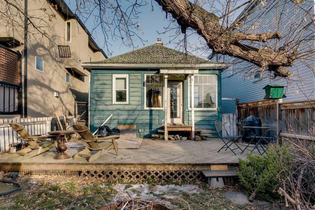 LOCATED IN MARDA LOOP — RARE DETACHED CHARACTER HOME FOR UNDER $600K! This is your opportunity to own a detached early-1900s CENTURY HOME in the heart of Marda Loop—an increasingly rare find under $600,000, a block away from a neighbourhood park. This home sits on a 25’ x 125’ R-C2 lot in one of Calgary’s most desirable neighbourhoods which makes it an excellent opportunity for redevelopment potential. Heading inside, a fully enclosed front porch greets you - bright, welcoming, and perfect as a sunroom or mudroom through Calgary’s changing seasons. Inside, the home features original hardwood floors, and a preserved fireplace that anchors the cozy living space. Skylights over the living area bring in natural light and enhance the home’s unique charm. The main floor layout is functional and thoughtfully arranged, offering two bedrooms, a full bathroom, and a sunny south-facing den/office—ideal for working from home or a quiet reading nook. The kitchen is bright and practical, with ample cabinetry, a gas stove and an adjoining breakfast nook, plus convenient access to the backyard. Take the party outside onto the large back deck, & private fully fenced-in yard complete with mature trees, perfect for those summer BBQs & dog-lovers! Downstairs, the full unfinished basement provides excellent storage today and clear future potential, whether you plan to renovate, expand, or hold as a long-term investment. The cherry on top is a detached double garage with lane access—a highly valuable feature in this location & no condo or HOA fees to go along with it. Just down the street is the Marda Loop Community Association which is home to the South Calgary Outdoor Pool, community garden, tennis courts, playground, Fire Station, pump track & a Calgary Public Library. Plus, enjoy true walkability to Marda Loop’s most popular cafes, restaurants, and shops—including Phil & Sebastian, Analog Coffee, Blush Lane Market, and Village Ice Cream—along with nearby parks, schools, quick access to 17th Ave, and an easy commute downtown. Jumping in the car: Downtown is a 12 min drive (5.6KM), Airport is a 25 min drive (19.3KM), & Banff is a 1hr 27 min drive (132KM).