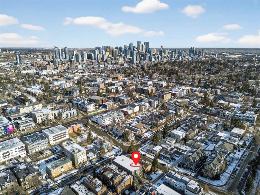 This home offers 1438 square feet, spread across two levels and rooms know what they’re meant to be. Most condos on the market are single-level and tightly packed, but here the space has room to breathe. One of the bedrooms tucks away a quiet nook—use it as an office, a media space, or somewhere to retreat when the day calls for it—along with a generous walk-in closet. Outside, the neighbourhood unfolds at an easy pace: Marda Loop sits about a fifteen-minute walk away—close enough for coffee, dinner, and errands, far enough to keep the peace at home. Set on the top floor and at the end of the building, this two-storey condo lives within a small eight-unit complex that feels more private than most. The layout is balanced and deliberate, with two true bedroom suites, each with its own ensuite, but thoughtfully different in their storage: one with a walk-in closet, the other with a wide, wall-to-wall closet that keeps everything within easy reach. The main level opens beneath nine-foot ceilings, anchored by a kitchen designed for real use rather than display—built around a quartz island, a gas stove, and upgraded stainless appliances—flowing naturally into a living area that feels open without feeling exposed. Upstairs, the separation continues, along with in-suite laundry and one of the home’s quieter luxuries: outdoor space on both levels. Two south-facing balconies—one above, one below—catch the sun from morning through evening and offer a sense of openness that’s hard to find in condo living. Below it all, a titled stall in the heated, secured underground parkade keeps the practical side of life as thoughtfully handled as the rest.