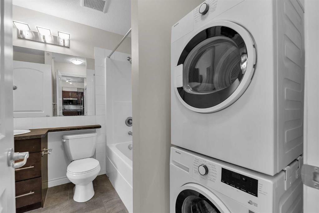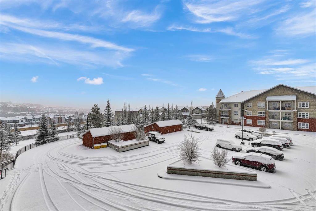 TWO titled heated underground parking stalls & TWO titled storage lockers! Welcome to the Summit of Montreux in sought-after Springbank Hill! This bright and spacious top-floor 2-bedroom, 2-bathroom unit offers an exceptional layout with bedrooms thoughtfully positioned on opposite sides, each featuring its own walk-through closet and private 4-piece ensuite, perfect for privacy, guests, or roommates. Natural light pours into the open-concept living space, highlighting the well-appointed kitchen with ample counter space, ideal for everyday living and entertaining. Step out onto your private southeast-facing balcony with a gas hookup, perfect for BBQ while enjoying expansive, unobstructed views. This unit truly stands out with TWO titled heated underground parking stalls, including one conveniently located right beside the elevator, and TWO titled storage lockers, a rare and valuable feature. Additional highlights include: In-suite brand new laundry (washer 2026 & dryer 2026), New window blinds (2026), Generous in-unit storage space. Access to a fully equipped fitness facility, bicycle storage, visitor parking, and a private courtyard. Located just steps from the shops and dining of Aspen Landing Shopping Centre, and close to walking paths, natural green spaces, schools, and transit. Minutes from Westside Recreation Centre, the LRT, downtown Calgary, and quick access to the mountains via Stoney Trail. Move-in ready and available for immediate possession. This is a fantastic opportunity to enjoy comfort, convenience, and lifestyle in one of Calgary’s most desirable communities. Book your private showing today!