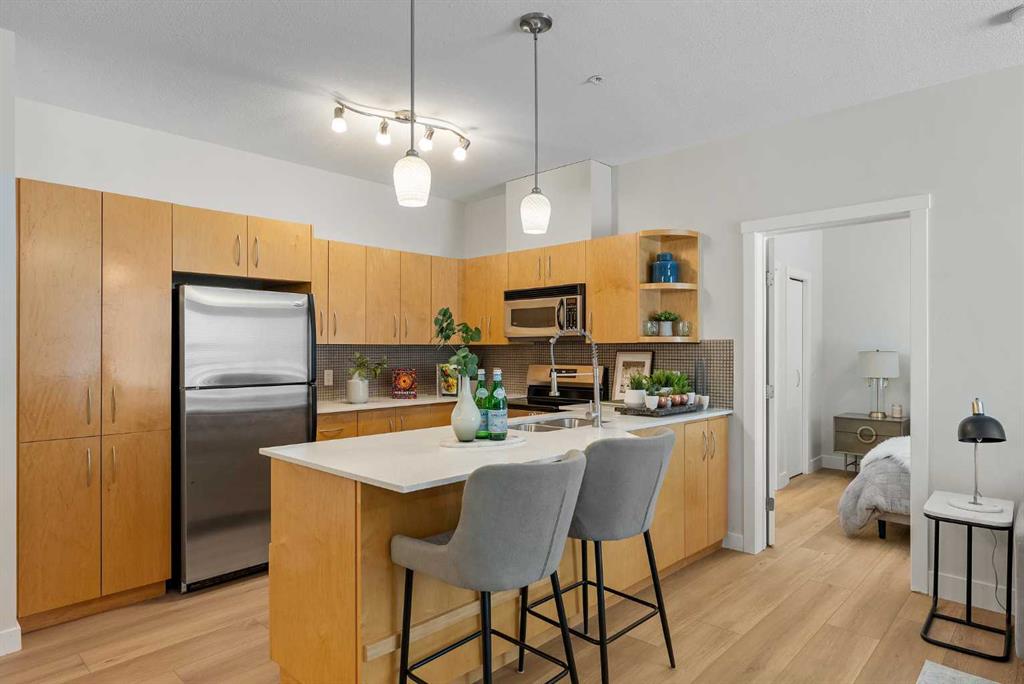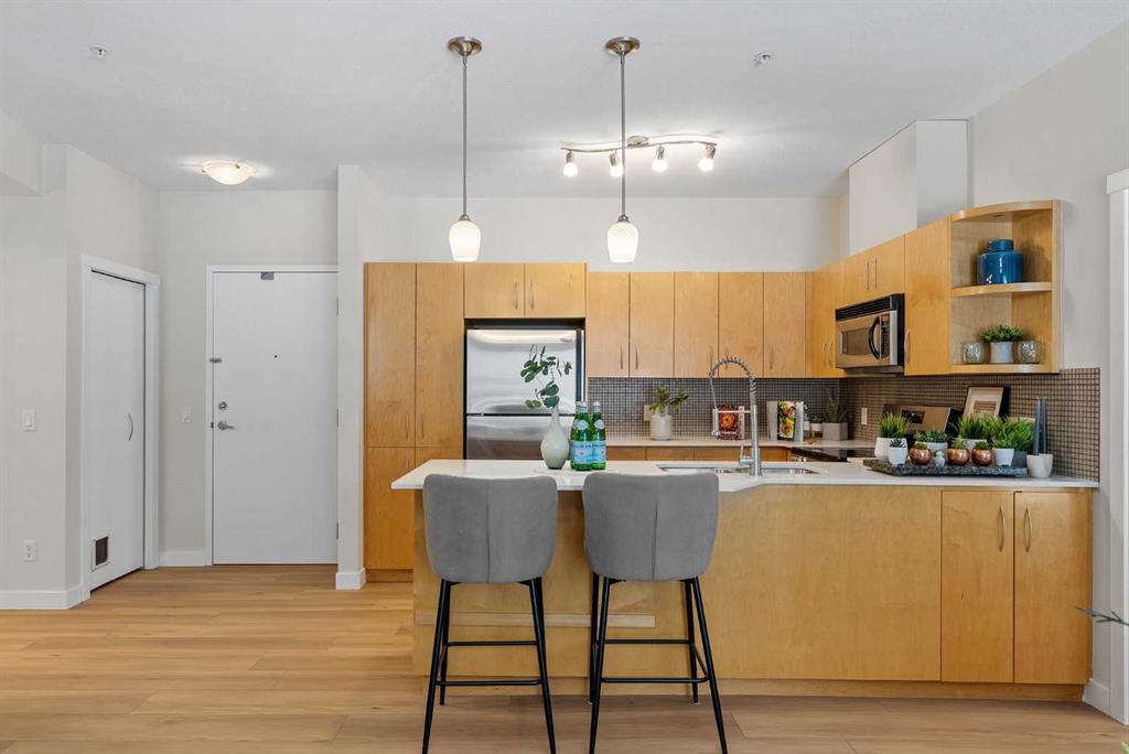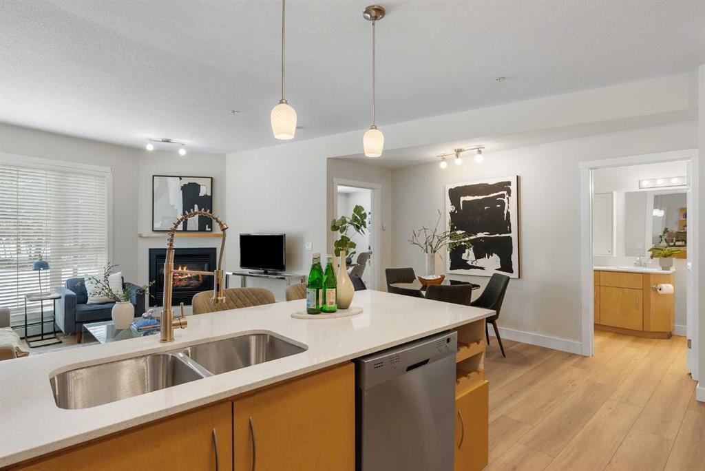 ** Open House Saturday, April 11, 2-4 pm ** Welcome to this beautifully renovated and move-in ready 2 bedroom, 2 bathroom ground-floor unit in an unbeatable location. Offering 816 square feet of well-designed living space and nearly 9 ft ceilings, this bright and spacious home features a smart split-bedroom layout—placing bedrooms on opposite sides of the unit for added privacy, perfect for roommates, guests, or families. This home truly stands out with extensive recent upgrades throughout, including brand-new paint from top to bottom, stylish quartz countertops, and beautiful new laminate flooring throughout the entire unit—creating a modern, cohesive feel the moment you step inside. The kitchen and bathrooms have been thoughtfully refreshed with updated counters and cabinets, a sleek goose-neck chrome faucet, and professionally installed new shower fixtures. Additional upgrades include a brand new blinds, stainless steel dishwasher and electric range. The sun-filled living area, complete with a cozy gas fireplace, is designed for both relaxing and entertaining. Enjoy a dedicated dining space along with a convenient breakfast bar—perfect for casual meals or hosting friends and family. Step directly outside to your private patio with a gas hookup, overlooking lush green space and a walking path—ideal for dog owners or anyone who appreciates seamless indoor-outdoor living. You are perfectly situated just steps from the Westside Recreation Centre, featuring swimming pools, skating rinks, a fitness centre, and an indoor track. The highly walkable location places you near 69th St LRT Station for an easy commute, Ernest Manning High School, Ambrose College, and the Springborough Professional Centre—home to local favourites like Waves Coffee, an award-winning yoga studio, and a variety of dining options.Rounding out this exceptional offering is a heated oversized underground parking stall (large enough for a truck) conveniently located near the elevator, along with a separate storage locker, bicycle storage, access to an underground car wash, and ample visitor parking.