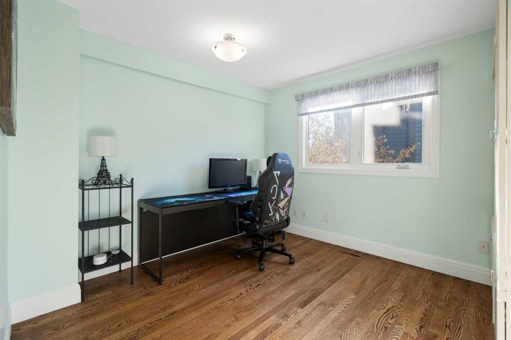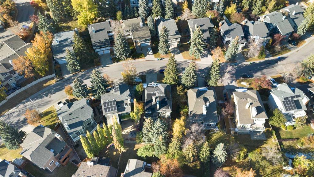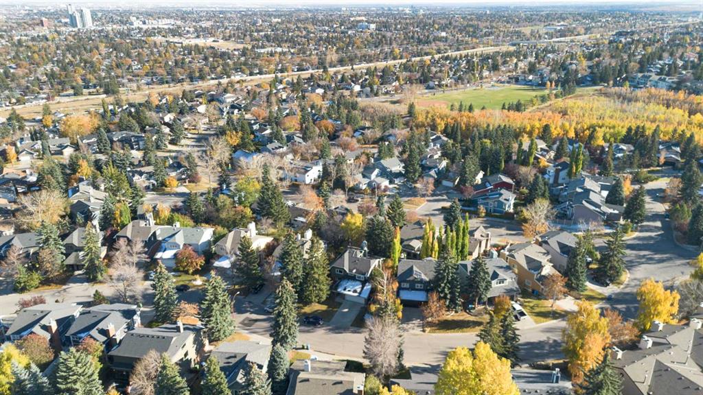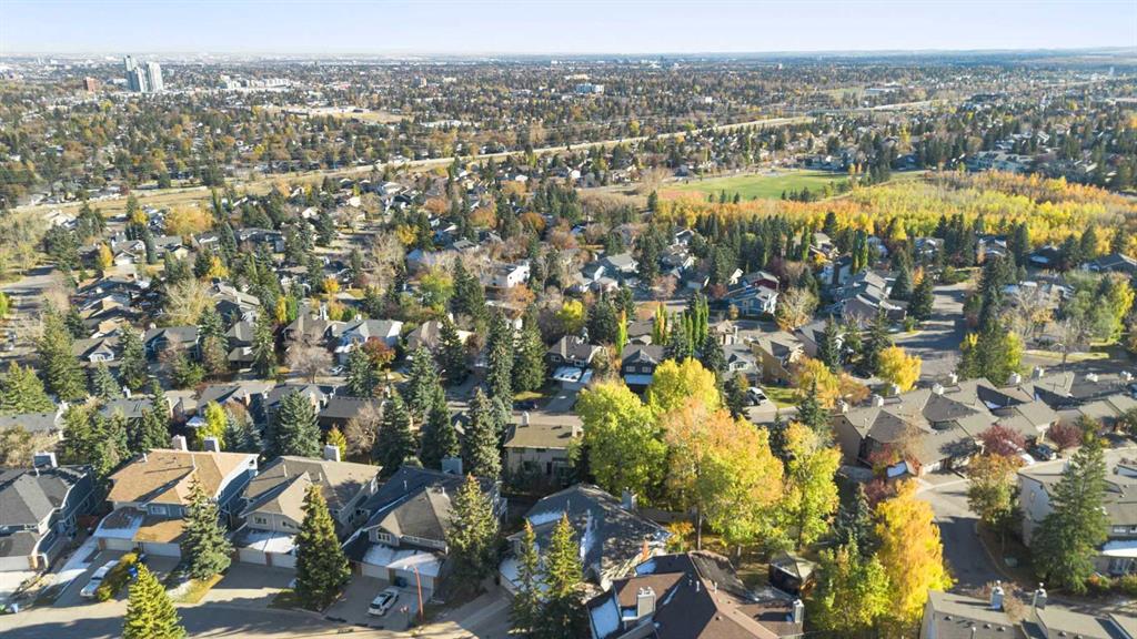 Welcome to Strathcona Park – one of Calgary’s most established and sought-after Southwest communities. Known for its quiet, tree-lined streets, family-friendly parks, and convenient access to downtown, this neighbourhood combines natural beauty with urban ease. Top-rated schools, walking trails, and proximity to shops and amenities make Strathcona Park a perennial favourite for those seeking a true sense of community. This 4-bedroom (upstairs), 3.5-bath home features a unique layout, thoughtful renovations, and seamless indoor-outdoor living with extended spaces on every level. The primary suite includes a cozy fireplace, a private balcony with downtown views, and a 4-piece ensuite, creating a true retreat. On the main level, you’ll find a fully renovated kitchen with Café appliances, custom cabinetry, a striking tile backsplash, and a large peninsula island with eating bar—perfect for everyday living and entertaining. The kitchen overlooks a formal dining room complete with a built-in hutch, leading out to one of four outdoor decks and balconies that capture both sunlight and scenery. The south-facing backyard is beautifully landscaped with mature trees, offering privacy and tranquility. Enjoy evenings on the composite decks with glass railings, or unwind on the covered exposed aggregate patio—an ideal spot for a hot tub. Additional features include a double attached garage with epoxy flooring, a stylish mudroom and laundry area, and a main-floor office/flex room that overlooks the vaulted living room with a wood-burning fireplace and another walkout deck.