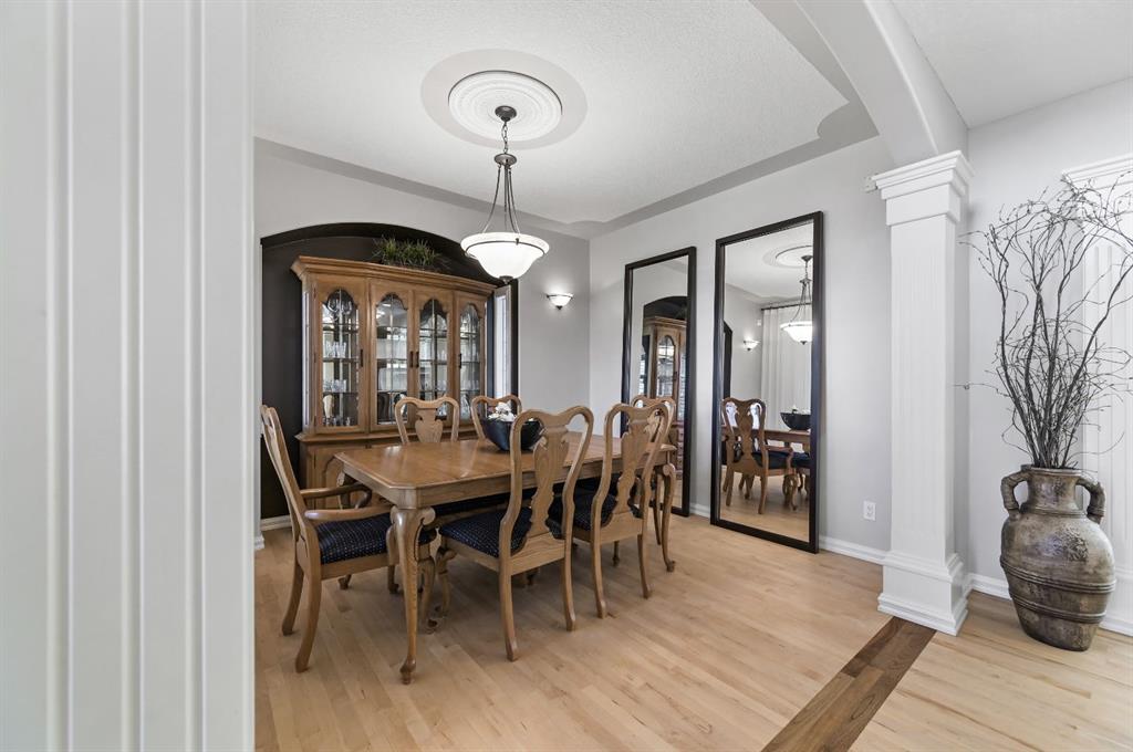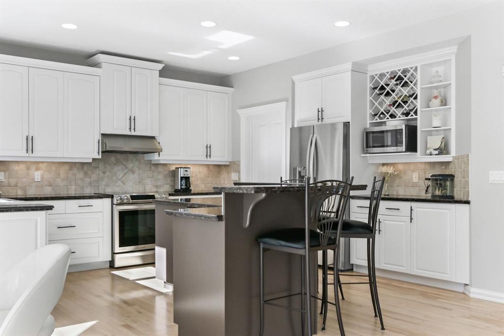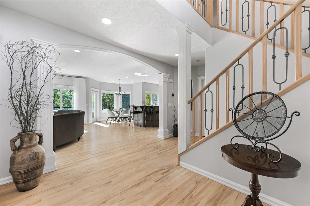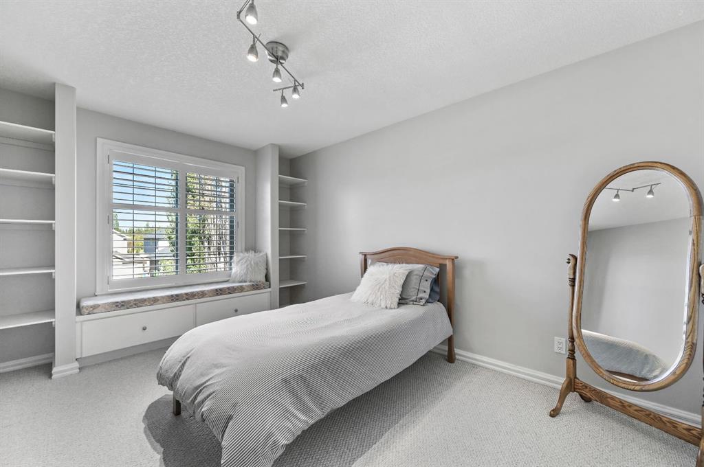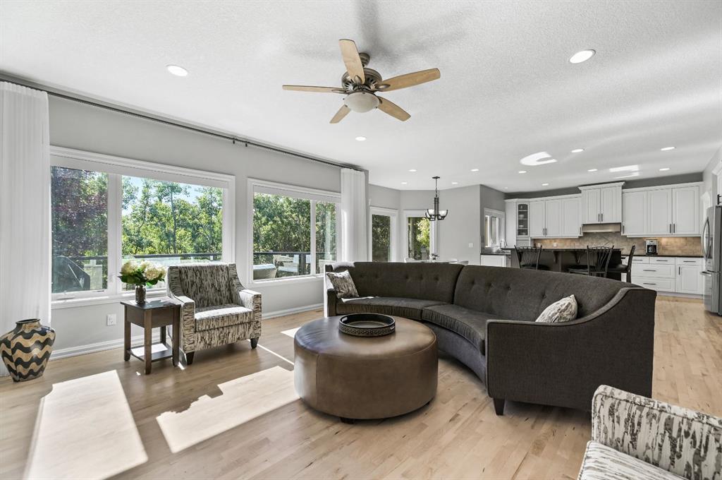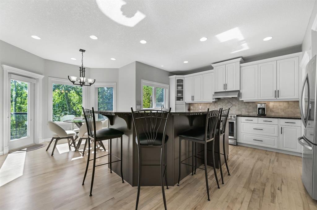 Welcome to your new home in the heart of Strathcona. A picturesque location backing directly onto a beautifully treed area with a very private and stunning south facing backyard for all the peace and quiet you could want! Close to all levels of schools including the celebrated Dr. Roberta Bondar elementary, shopping, walking paths, greenspace, recreation centres, LRT, and the commuter roads to get you wherever you need to be in minutes! This home has been lovingly maintained by the original owners and offers 4 bedrooms, 4 bathrooms and more than 3700 sqft of beautifully appointed and cared for living space. The bright and open main level has spacious kitchen with walk through pantry to the mudroom and laundry area, dining room, and cozy family room with gas fireplace and patio doors to the huge deck overlooking the yard and trees. Upper level includes a spacious primary bedroom with walk in closet and full ensuite with heated floors plus two additional bedrooms. The walkout lower level has a bedroom, full bath, and a large recreation and games area with custom built-ins, gas fireplace, pool table (included), plus easy access to the covered lower patio to really enjoy your private yard and natural area. The many features and upgrades include central air conditioning on the upper level, energy efficient solar panels, custom exterior house illumination, heated oversized double attached garage, irrigation system, gas line for BBQ or fire tables on upper and lower decks, and even a convenient laundry chute! This part of the city has evolved to be THE place to be, with continually expanding lists of restaurants, schools and businesses choosing the southwest hill.