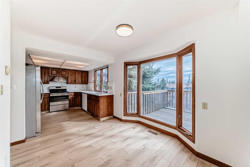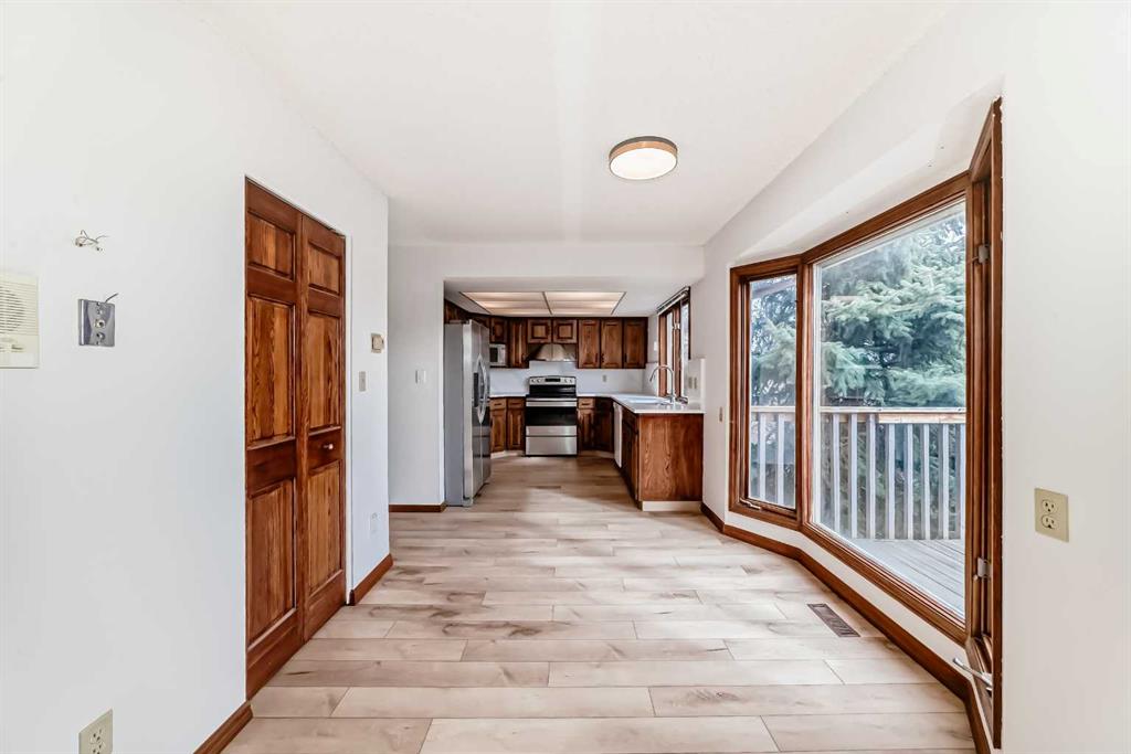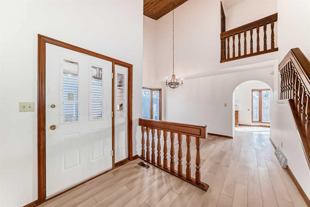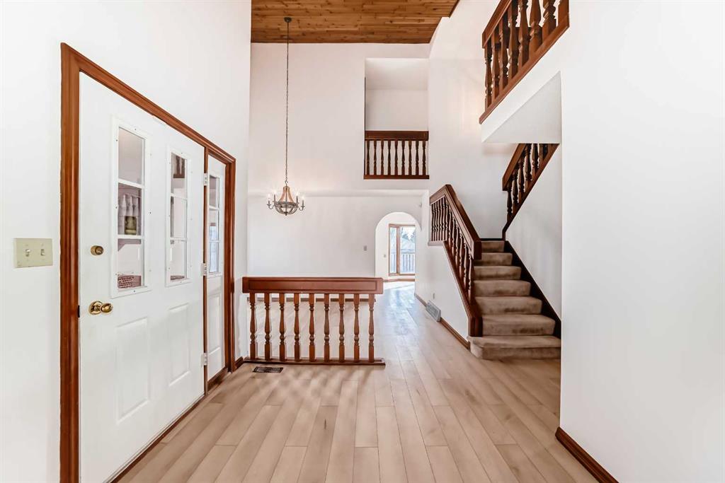 This spacious property features over 2,200 sq. ft. of above-grade living space, complemented by a fully developed basement, offering a total of five bedrooms and 3.5 bathrooms. The upper level boasts four generously sized bedrooms, including a bright and airy primary suite with its own private balcony—perfect for relaxing and enjoying the serene surroundings. The main floor welcomes you with soaring ceilings that enhance the sense of space, along with brand-new vinyl plank flooring and fresh paint throughout, creating a modern and move-in-ready feel.