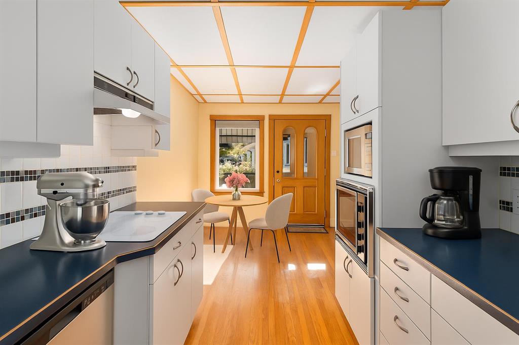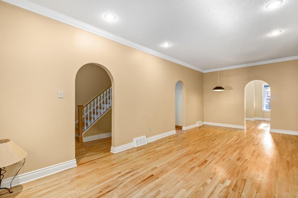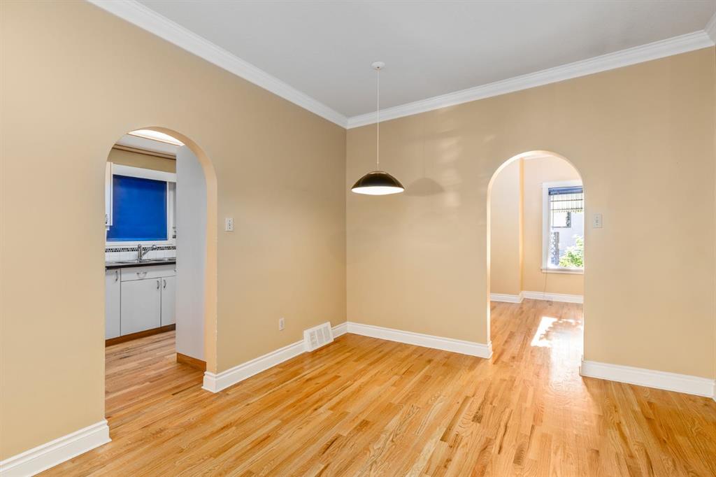 Inside, the main floor features 9-foot ceilings and solid hardwood flooring that continues throughout both the main and upper levels. The layout includes a spacious living room, a formal dining area, and a bright kitchen with a cozy breakfast nook. Upstairs, you’ll find three bedrooms and a full 4-piece bathroom.