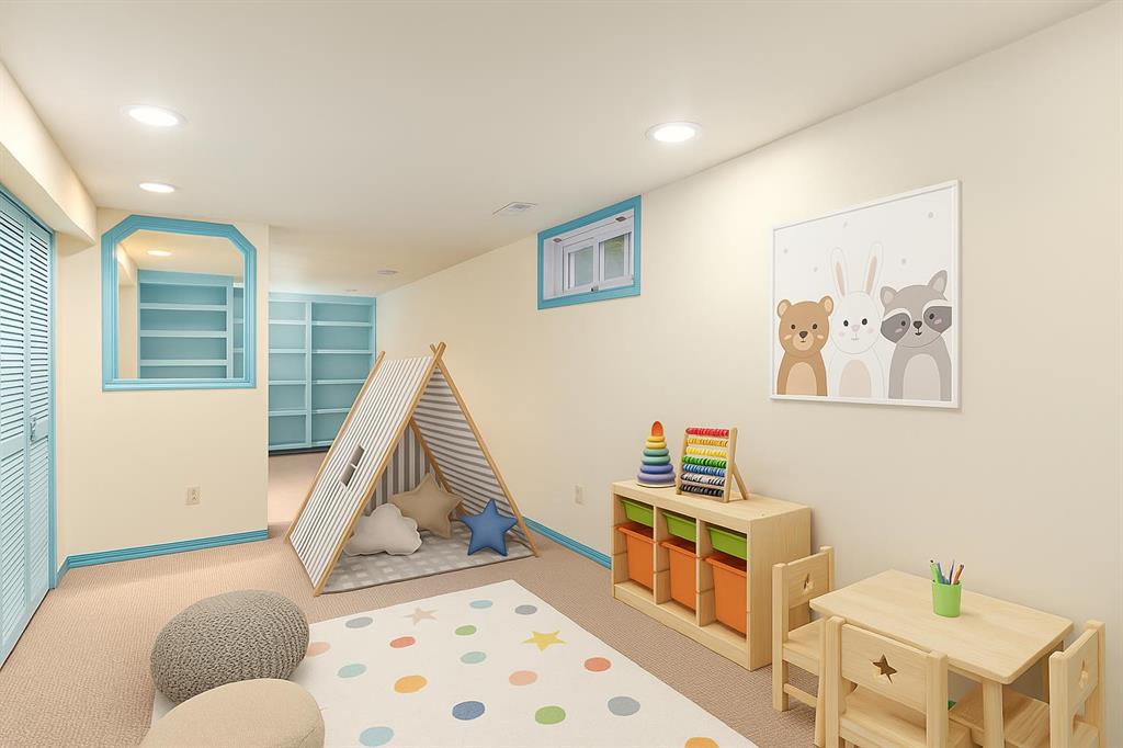 The fully finished basement provides additional living space with a large recreation/family room (perfect for a gym or media area), a 3-piece bathroom, and a generous laundry/storage room. Outside, the south-facing yard offers a private patio surrounded by mature shrubs and a detached single garage.