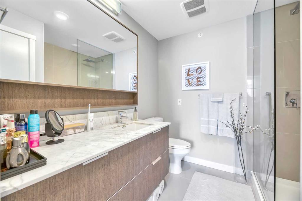 Welcome to PENTHOUSE life at The Ven, where contemporary style meets an unbeatable inner-city location in the heart of vibrant Sunnyside. This stunning sunny SE facing, top-floor condo with 14' VAULTED ceilings offers two bedrooms, two full bathrooms, and 741 square feet of beautifully designed living space—all framed by breathtaking, unobstructed views of Calgary’s downtown skyline.