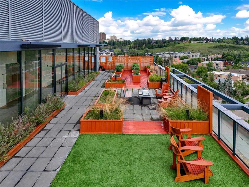AIRBNB & SHORT TERM RENTALS PERMITTED, INVESTOR FRIENDLY! Experience URBAN LIVING AT ITS FINEST IN THE ANNEX! Welcome to this stunning, modern 1 BEDROOM PLUS DEN CONDO in Calgary’s iconic, sustainable ANNEX BUILDING, where the ENERGY OF KENSINGTON and the TRANQUILLITY OF THE BOW RIVER come together. Imagine starting your mornings with a walk through TREE LINED SUNNYSIDE or grabbing coffee at a LOCAL CAFE, then winding down your evenings on the ROOFTOP PATIO soaking in PANORAMIC SKYLINE VIEWS. Step inside to discover BRIGHT OPEN CONCEPT LIVING, enhanced by FLOOR TO CEILING WINDOWS that flood the space with natural light. The GOURMET KITCHEN features PREMIUM STAINLESS STEEL APPLIANCES, a GAS RANGE, sleek CABINETRY, and a CENTRAL ISLAND, perfect for hosting friends or enjoying a quiet night in. The SPACIOUS BEDROOM offers INCREDIBLE CITY VIEWS, while the VERSATILE DEN is ideal for a HOME OFFICE or CREATIVE STUDIO. Enjoy year-round comfort with IN SUITE CLIMATE CONTROLS and ADVANCED AIR QUALITY SYSTEMS. Unwind or entertain on your EXPANSIVE PRIVATE BALCONY, or take advantage of the ANNEX AMENITIES including a ROOFTOP GAZEBO, BBQ AREA, and LUSH GARDENS. Commuting is easy with the LRT JUST STEPS AWAY, and everything you need is right at your doorstep including SHOPS, RESTAURANTS, PARKS, and RIVER PATHWAYS. Complete with IN SUITE LAUNDRY, SECURE UNDERGROUND PARKING, and a WALKABLE CONNECTED LOCATION, this is the LIFESTYLE you have been waiting for.