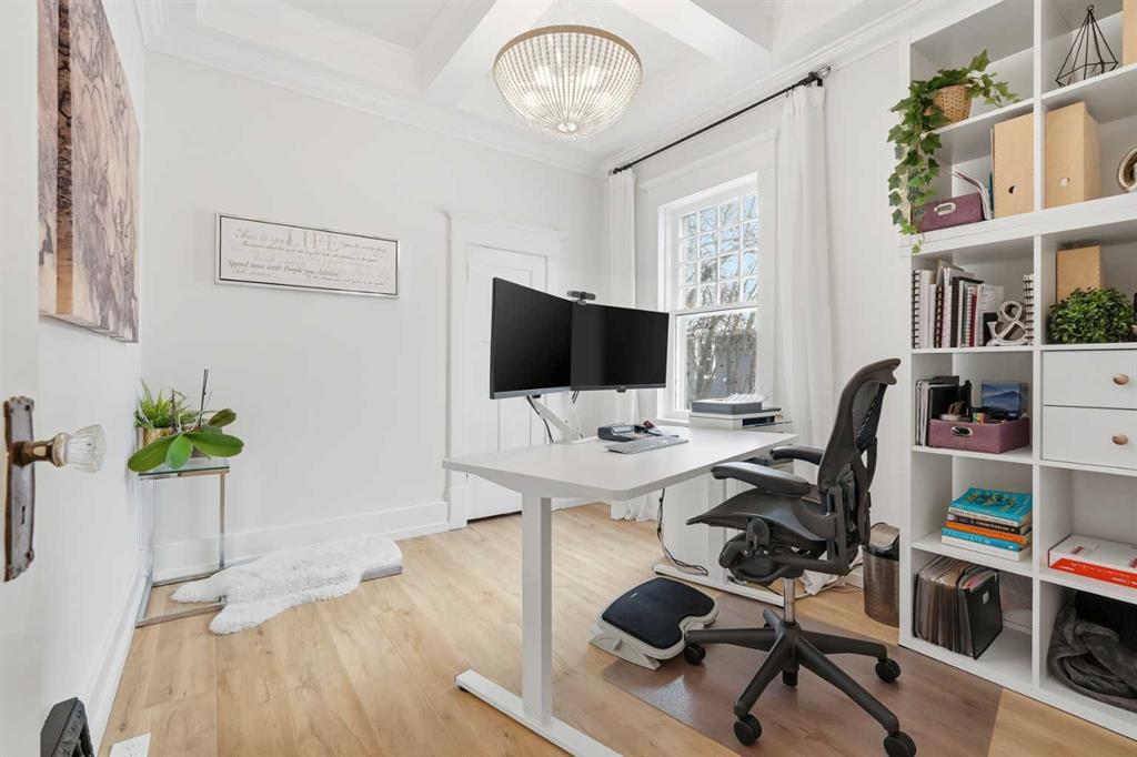 Inside, you’ll love the warmth and personality throughout, highlighted by 9.5’ ceilings, oversized baseboards, and a flexible main floor layout designed for today’s lifestyle. The living room is anchored by a cozy gas fireplace, creating the perfect space to relax and unwind.