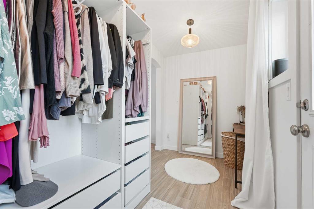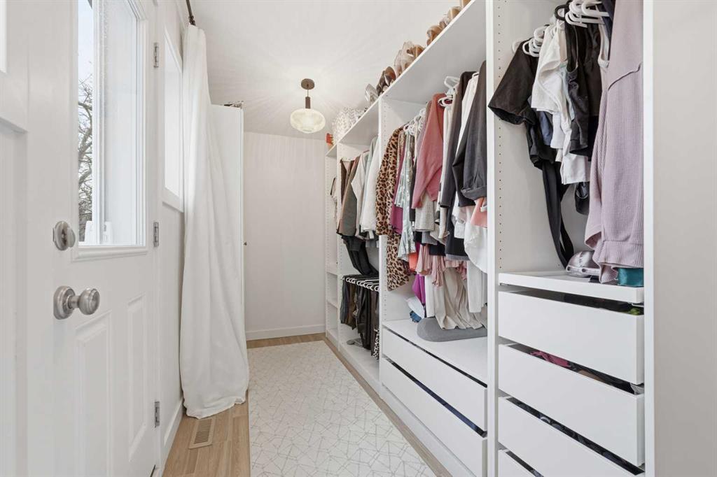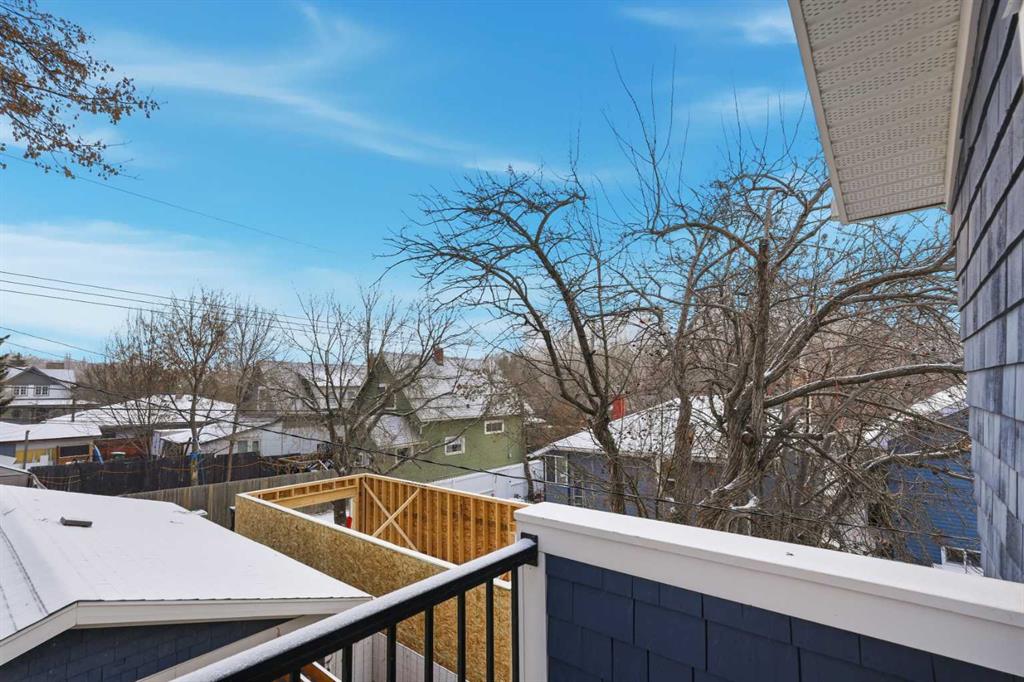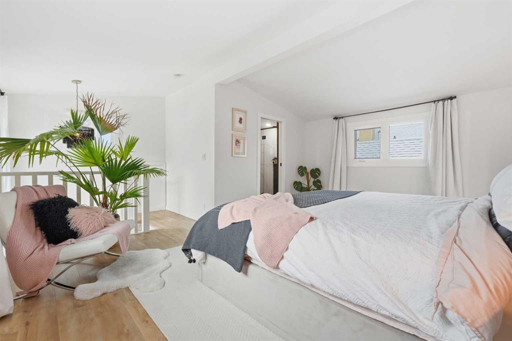 Upstairs, the primary suite feels like a private retreat with a walk-in closet, built-in storage, a private balcony, and a full ensuite bathroom—a rare and desirable feature in a character home.
